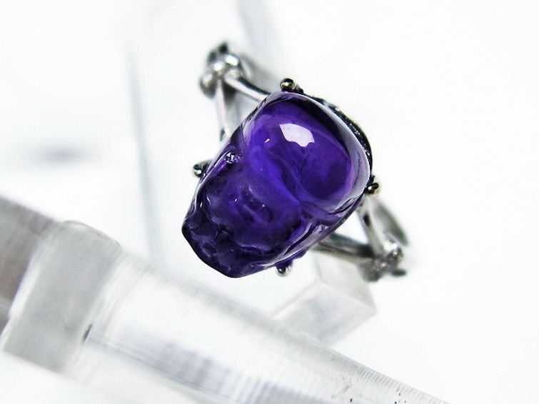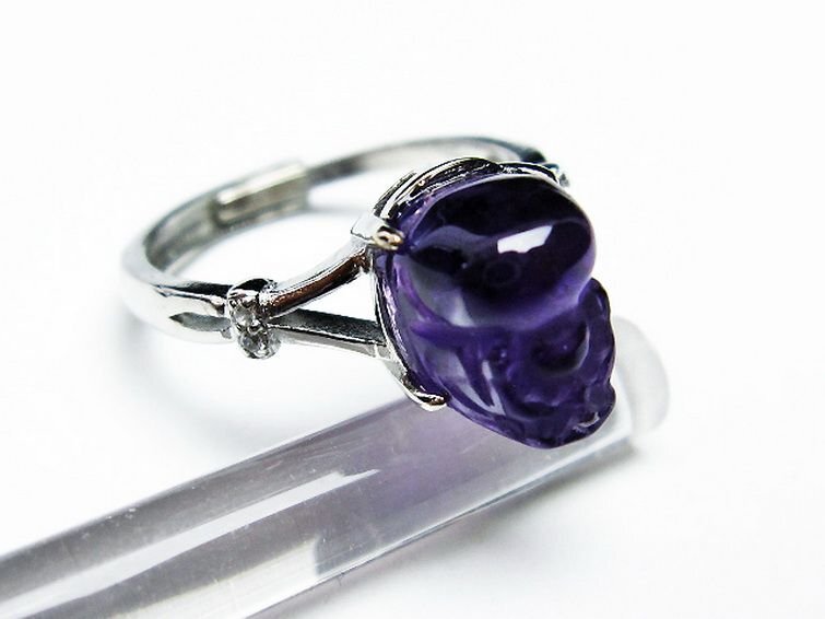 ■商品名: アメジスト ヒキュウ 指輪 ■商品ID: T275-21063 ■商品重量:約 2.6g ■商品サイズ:サイズ:15号 【アメジストクォーツ(紫水晶)】 アメジストは鉄分によって紫色に発色した水晶の一種です。 名称はギリシャ語で酒の意味のmethyと否定辞のa、つまり「酒に酔わない」「この石でできた盃で酒を飲めば悪酔いしない」に由来するとされています。 「酒に酔わない」と言われる通り、アメジストは体調面への作用が大きく、血液を浄化して解毒、解熱作用を高め皮膚病の治療や不眠を解消するのにも用いられたと言われています。 アメジストは真実の愛を導く愛の守護石とも呼ばれ恋愛運UPの石としても広く知られています。 理想的な出会いをもたらす効果や持ち主に美や調和を与え、セクシーな魅力を引き出すとのことですので恋愛成就のお守りとしても最適といえるでしょう。 また、くよくよしたり傷ついたりしている時には癒し、目前の困難を乗り越えていけるように精神を強くするヒーリング効果も期待できます。 不眠にも効果があるとされていますので、ストレスを抱えている人にもおすすめの石です。 ⇒ アメジストをもっと詳しく ◆ワンポイント情報 アメジストは産地によって結晶や色味の傾向が変わります。 例えばブラジル産は結晶が大きめだが色味は少し薄め、ウルグアイ産は結晶は小さく細かいが色味は濃紫の傾向、メキシコ産は細長い結晶でライラックの様な明るく透明感のある紫など特徴が異なります。 産地による好みが人によって分かれるのもアメジストならではと言えるでしょう。 |