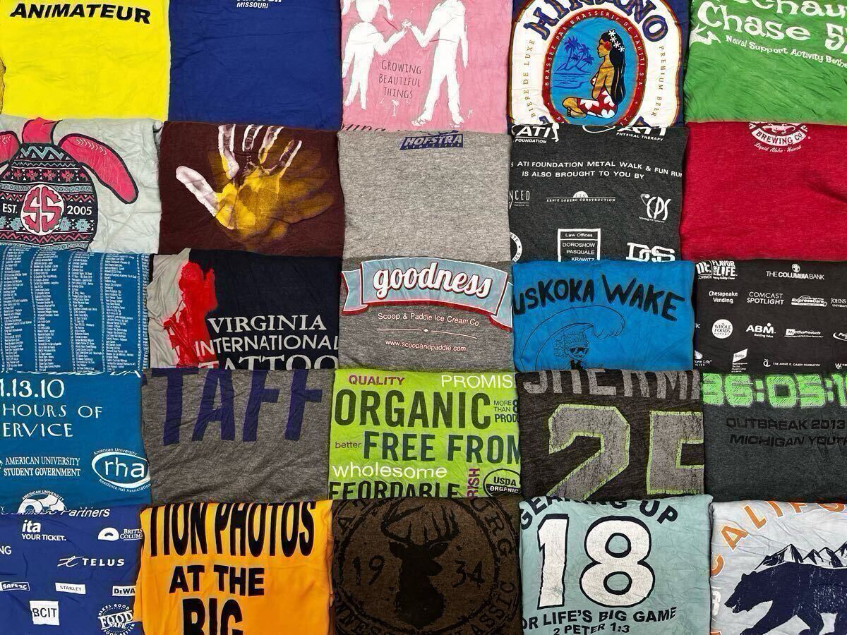 両面バックプリント・バンドロック・キャラクター・チーム物・ロゴ・文字・丸首・Vネックなど様々なデザインのランダムミックスになります。