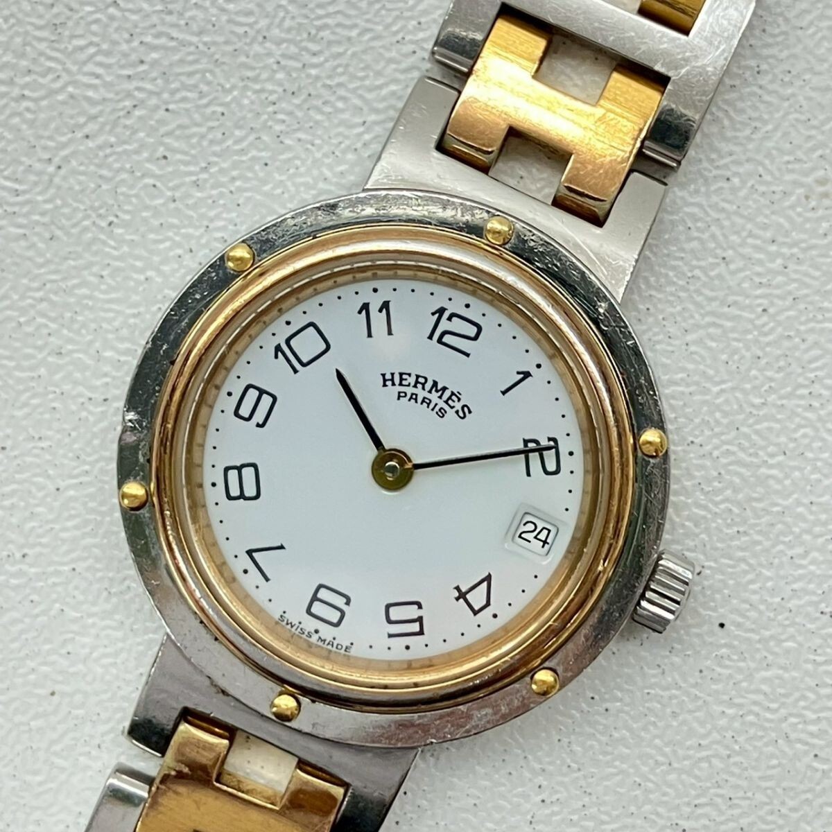 取り扱っている商品は未使用・未開封も含め、全て一度は人の手に渡った一点ものの中古・ジャンク扱いでの商品です。 当方素人ですので肉眼で確認できる簡易的な検品、採寸、および簡易梱包となります。 ※稼働の記載につきましては秒針等の確認のみとなり、全体の動作を保証するものではございません。 また、出品時の中古品の動作状況となりますので、予めご了承の上でご入札ください。 不動の表記につきましてはクォーツ式のムーブメントの場合、動作未確認の状態となります。 電池交換後、不具合があった場合でも返金、返品の対象とはなりませんので、予めご了承くださいますようお願い致します。 細かな日差、オーバーホール状況、社外パーツの使用に関しては保証しかねますので、ご理解いただけた上でのご入札をお願い致します。 上記を踏まえた上で中古品、ジャンク商品として出品させていただいておりますので、全てご理解いただけた上でのご入札をお願いいたします ------------------------------------------------------------------------- 【メーカー】 HERMES 【モデル名】 クリッパー 【型番】 - 【シリアル】 145154 【サイズ】 直径約2.4cm 腕回り約14.5cm 【付属品】 画像参照 【稼働状態】 稼働 【その他状態】 リューズ動作 時間:OK 日付:OK 曜日:- ------------------------------------------------------------------------- 画像にあるものが全てです。 他詳細は画像にてご判断ください。 ※目立つ傷や汚れを中心に写真を撮っておりますが、画像に写りきっていない傷等がある場合もございます。予めご了承ください。 ※商品を多数出品している関係で、稀に商品説明や画像に誤りがある場合がございます。予めご了承ください。 こちらのページをご覧いただく際は、商品説明文と掲載している画像の全てを確認いただいた上でご入札ください。 | |||||||