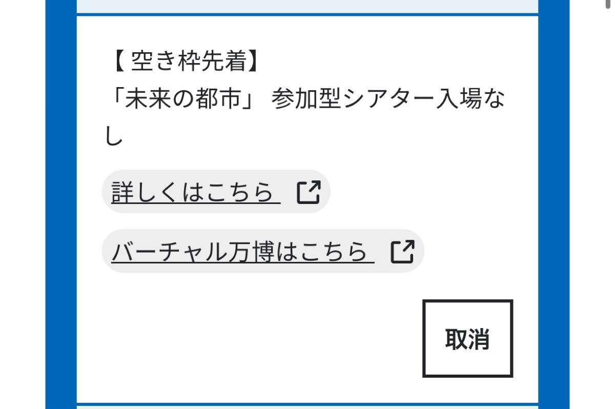 9時後半に「未来の都市(シアターなし)」予約追加になりました。