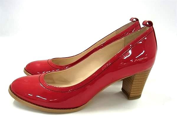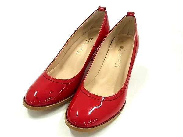 ■美品■ DIANA ダイアナ パテントレザー ヒール パンプス 表記サイズ 22 1/2 (約22.5cm) 靴 シューズ レディース レッド系 DI5808