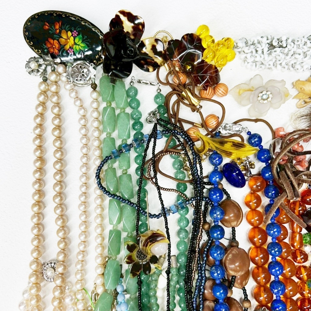 ▼商品特徴 商品に興味をもっていただき、ありがとうございます。 写真にありますアクセサリー類 まとめ商品です。 ◆商品 : アクセサリー類 卸 ・画像にあります様に多種多様なアクセサリーになります。 ※各商品材質など一切査定しておりませんのでご了承ください。 ◆総重量 : 1,215g ◆状 態 : USED ・金具の壊れているもの、傷、汚れがあるものもあります。 ※返金には対応出来ませんのでご了承ください。 ※同梱可能な場合もございますのでその際はおまとめ取引をご選択ください。 ※配送方法がヤフネコ又ゆうパック2種類ございますので同梱出来かねる場合がございます。 こちらで他にも出品中。Crew・actショップ↓↓ ![]() | ||