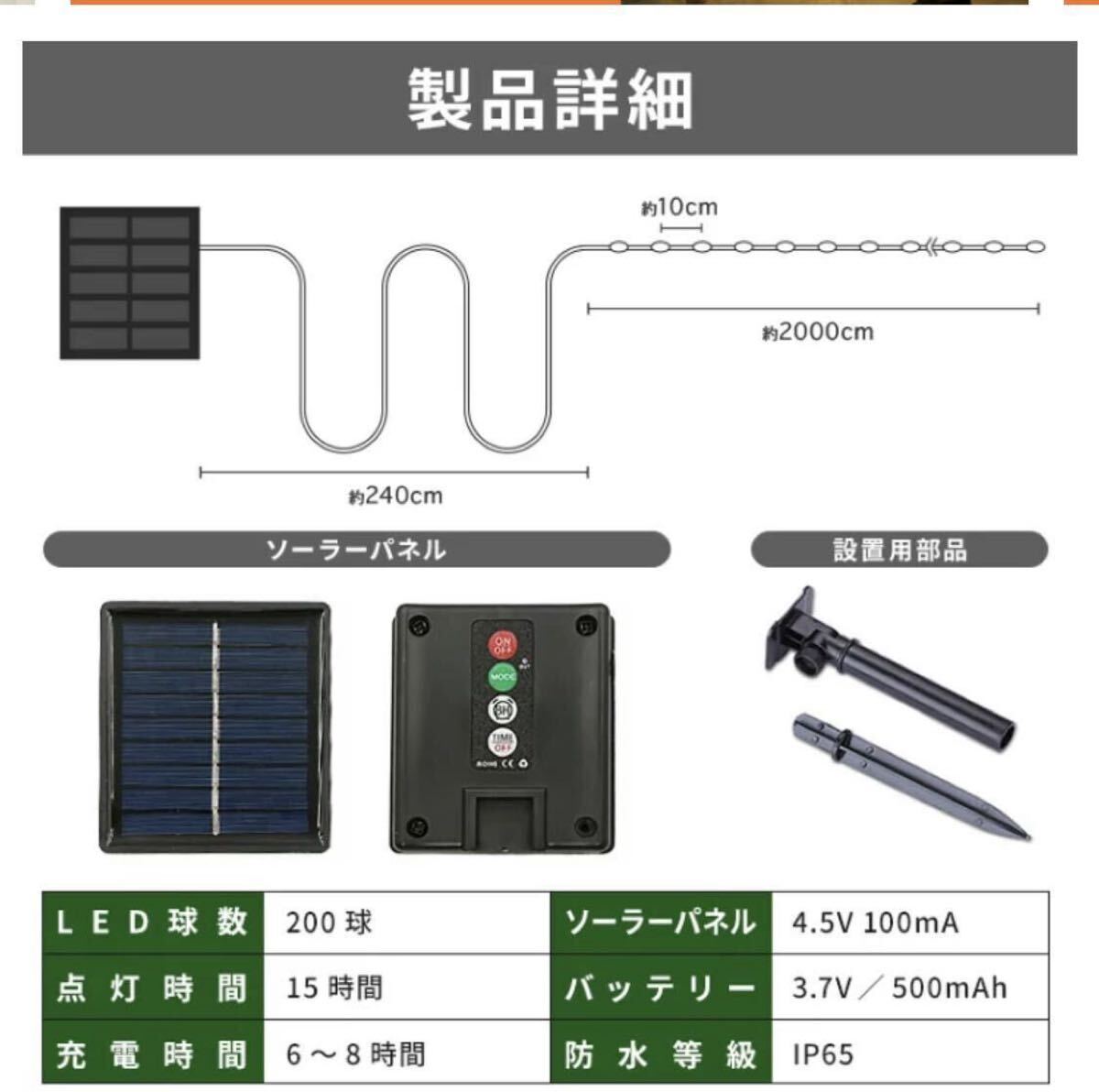 商品内容ソーラーイルミネーション(ソーラーパネル含む)本体×1、支柱×2