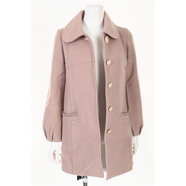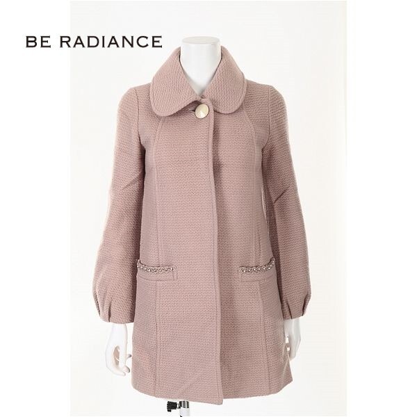 A5614/美品 秋冬 BE RADIANCE ビーラディエンス ウール アンゴラ 起毛 ショールカラー 膝丈 ステンカラーコート F M程 ピンク/レディース