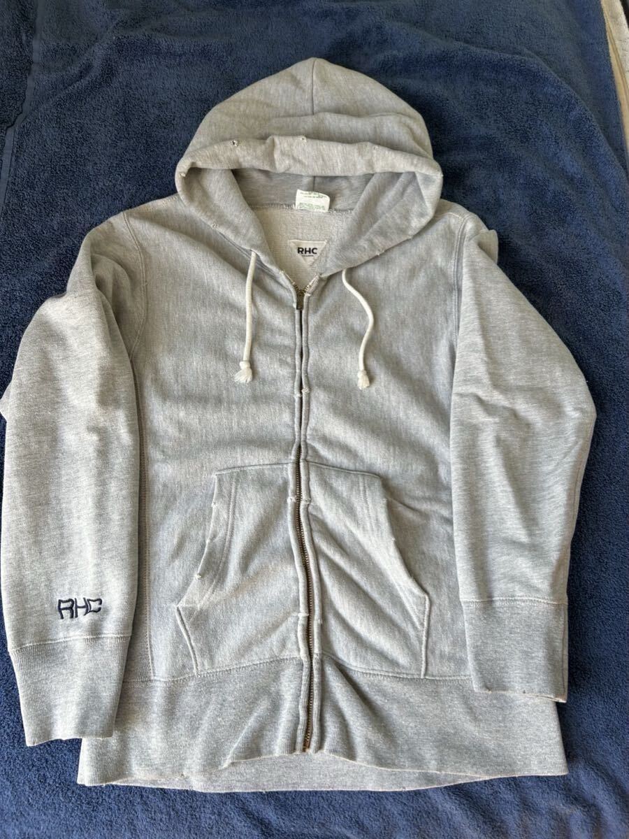 合わせやすいグレーカラーを基調に、背面には“California”のプリント、袖口にはRHCのロゴ刺繍をあしらい、シンプルながらも存在感を放つ仕上がりです。