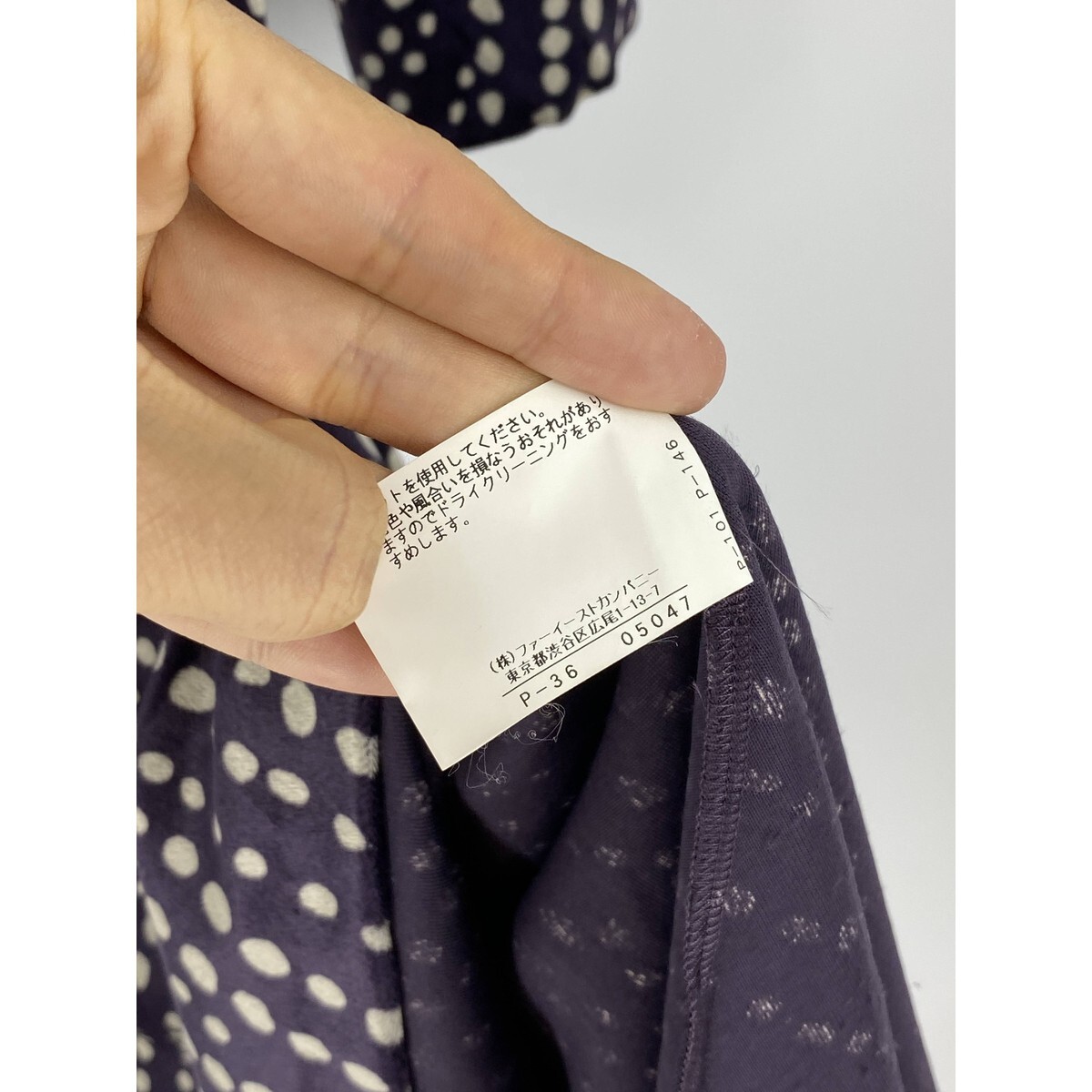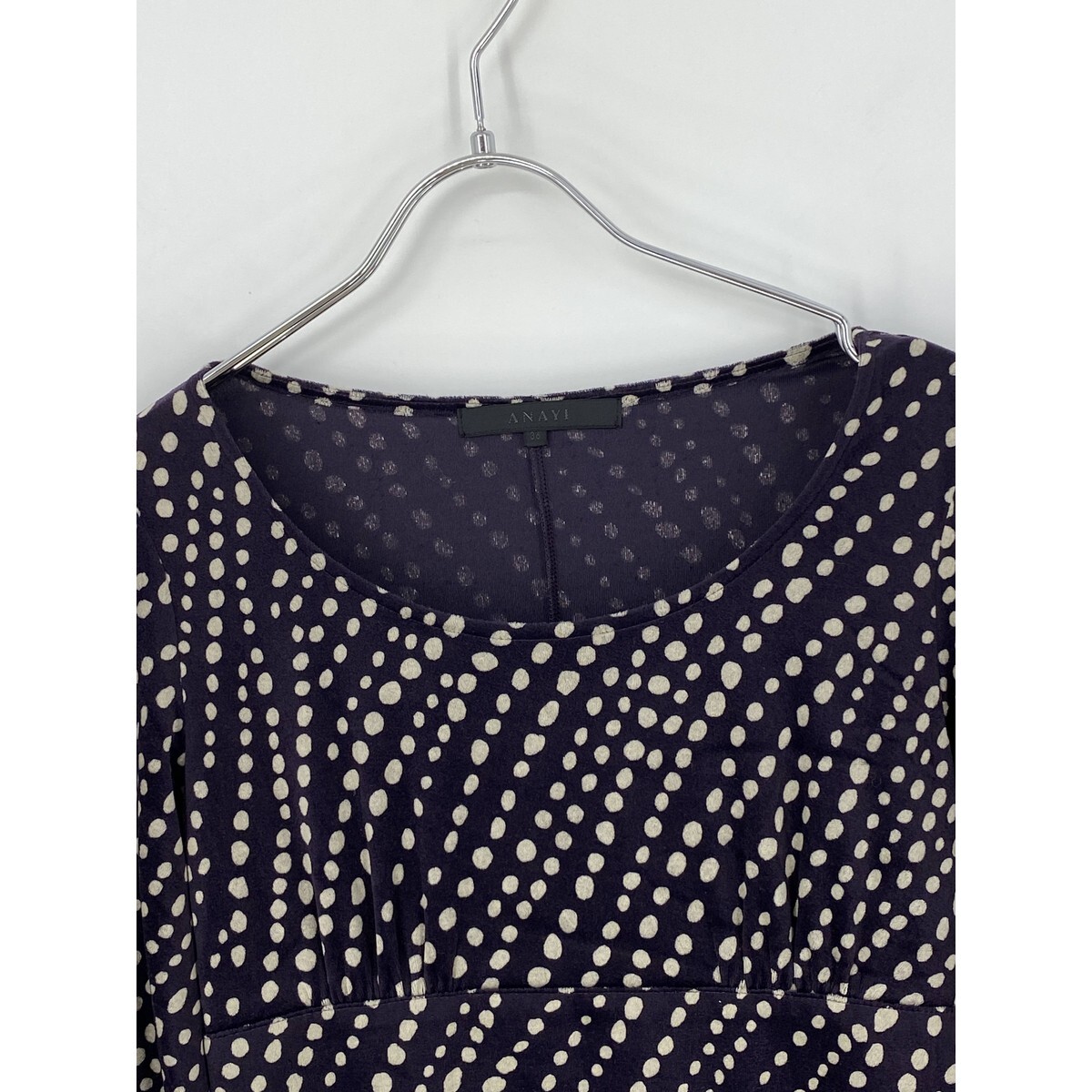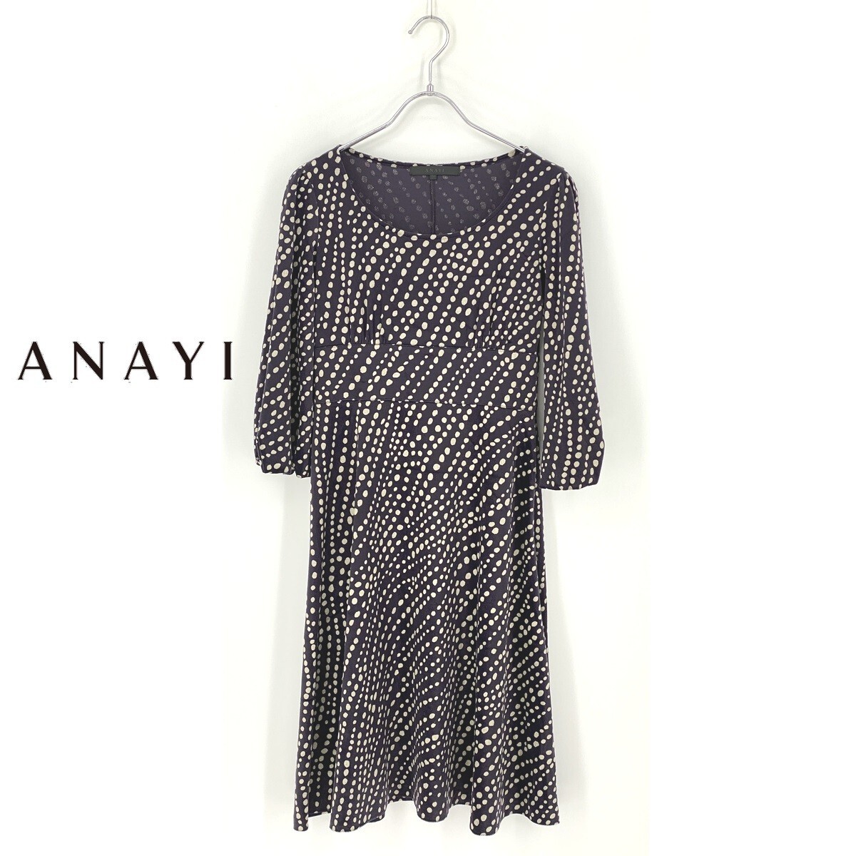 B0281/極美品 ANAYI アナイ ベロア ベルベット ドット柄 総柄 長袖 ギャザー フレア ドレス 膝丈 ワンピース 36 S程 紫 レディース