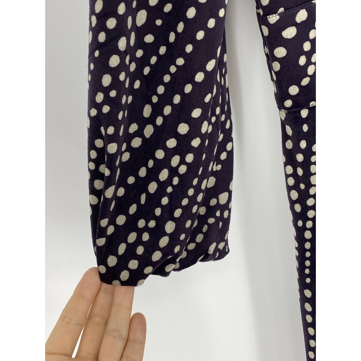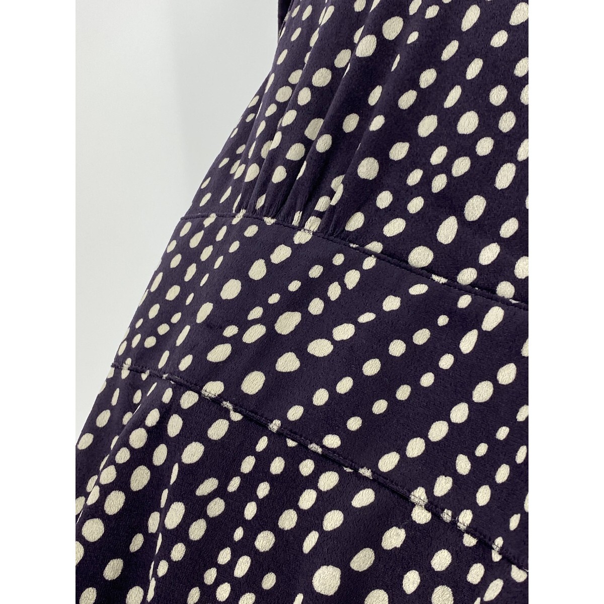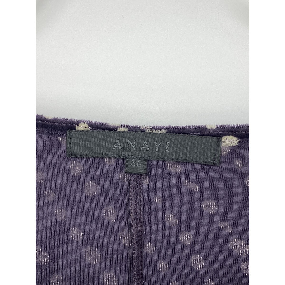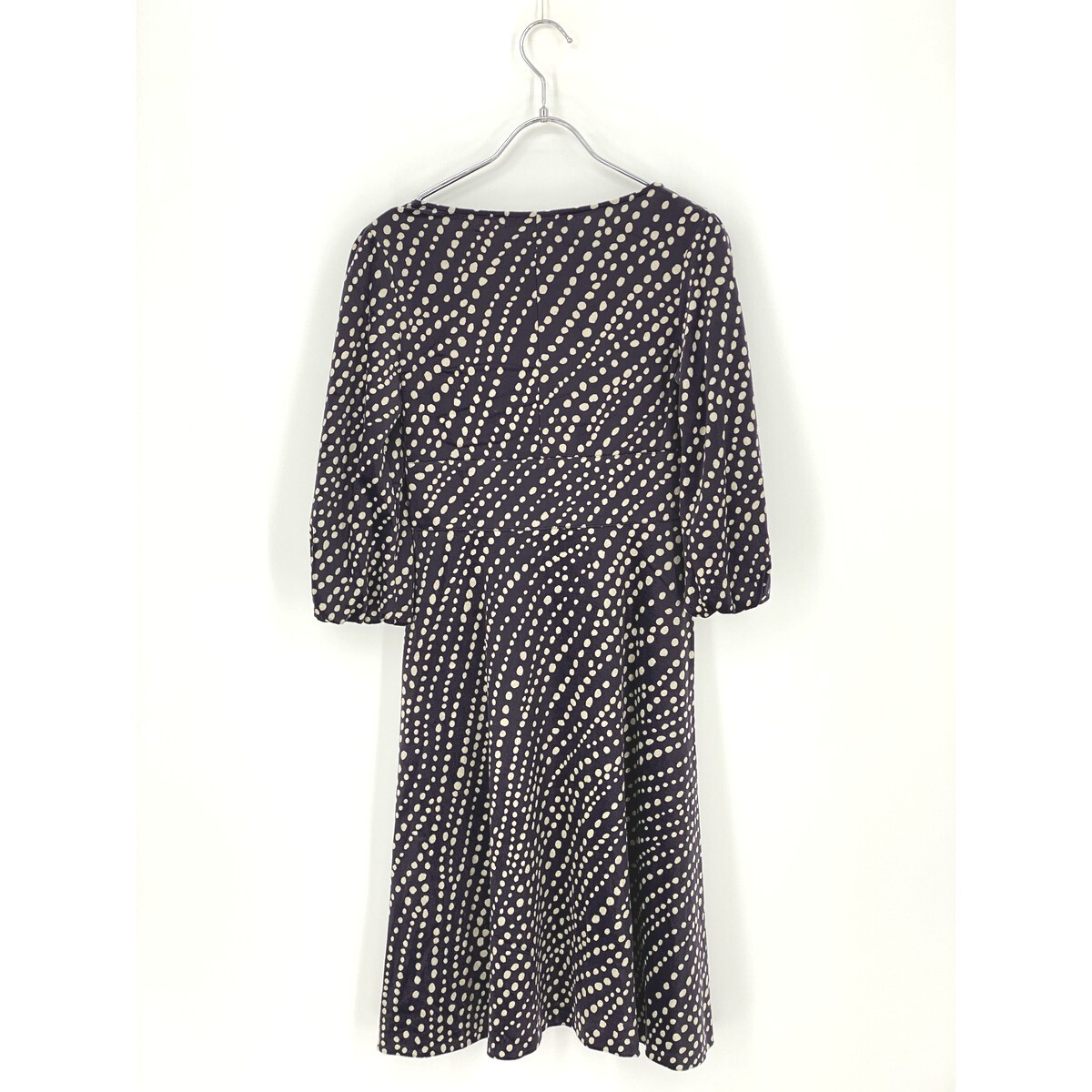 B0281/極美品 ANAYI アナイ ベロア ベルベット ドット柄 総柄 長袖 ギャザー フレア ドレス 膝丈 ワンピース 36 S程 紫 レディース