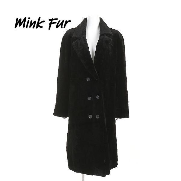 A5772/美品 秋冬 シェアードミンク シルク100% 毛皮 ファー リバーシブル ロング セミロング トレンチコート M FREE ブラック/レディース