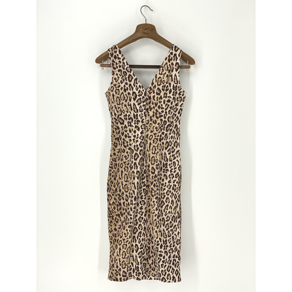 A7734/極美品 春夏 DOLCE&GABBANA ドルガバ D&G レオパード ヒョウ柄 ノースリーブ ロング ミモレ丈 ワンピース 24/38 L程 茶/レディース
