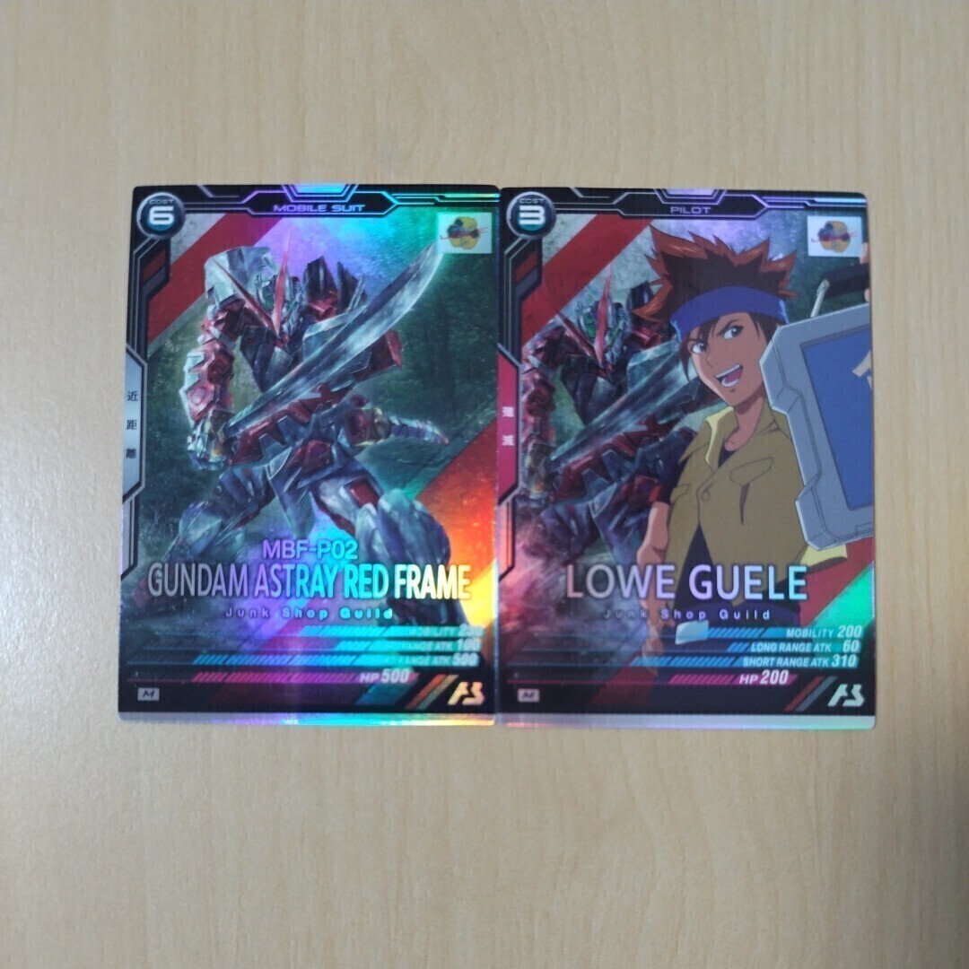 ガンダムアーセナルベース、Mレア、ガンダムアストレイレッドフレーム & ロウ・ギュールの出品となります。未使用品です。排出後、スリーブに入れて保管していますが初期キズなど気になさる方はご遠慮ください。配送料金は梱包代込みで全国一律、120円とさせていただきます。他の出品との同梱は対応いたします。ノークレム、ノーリターンにてお願いいたします。