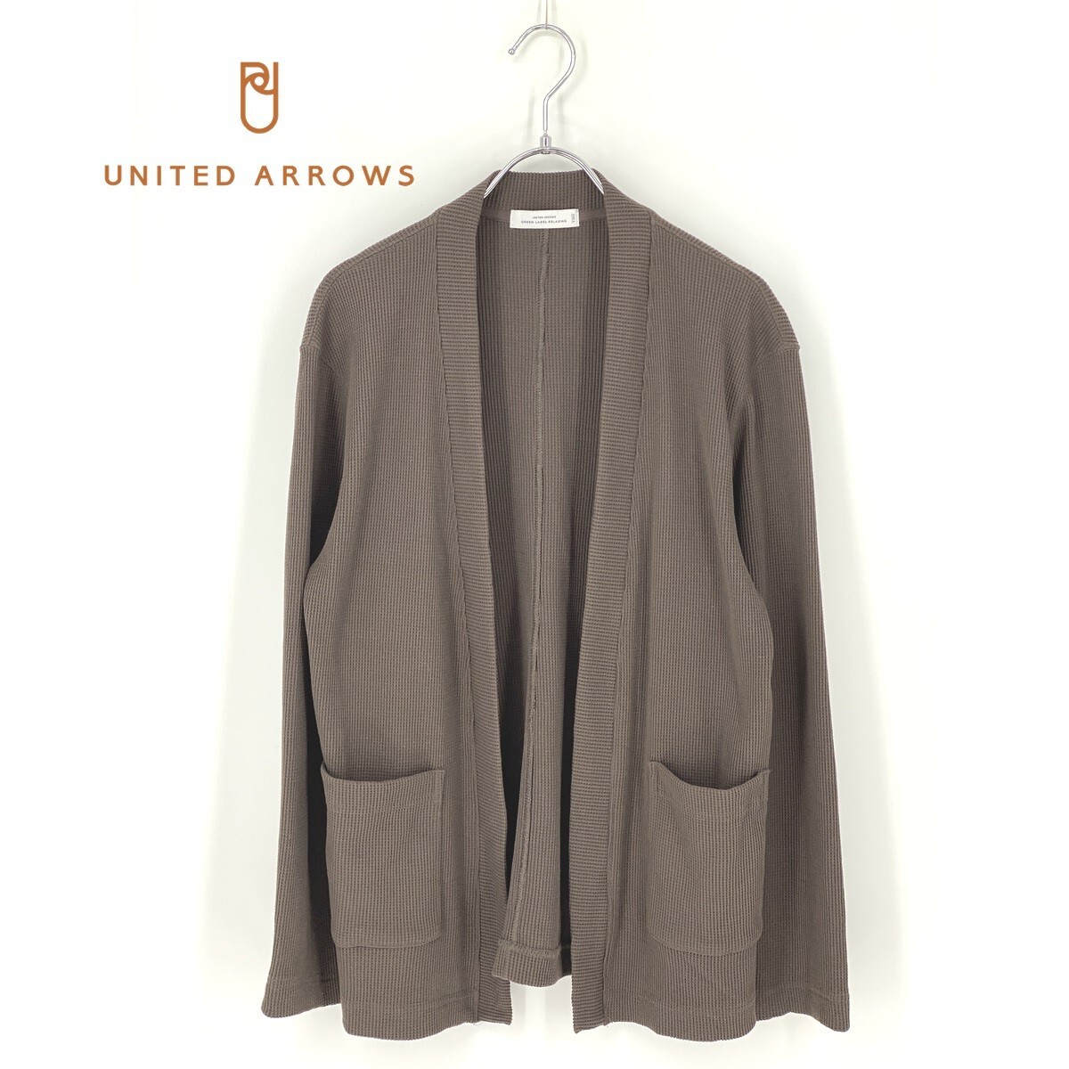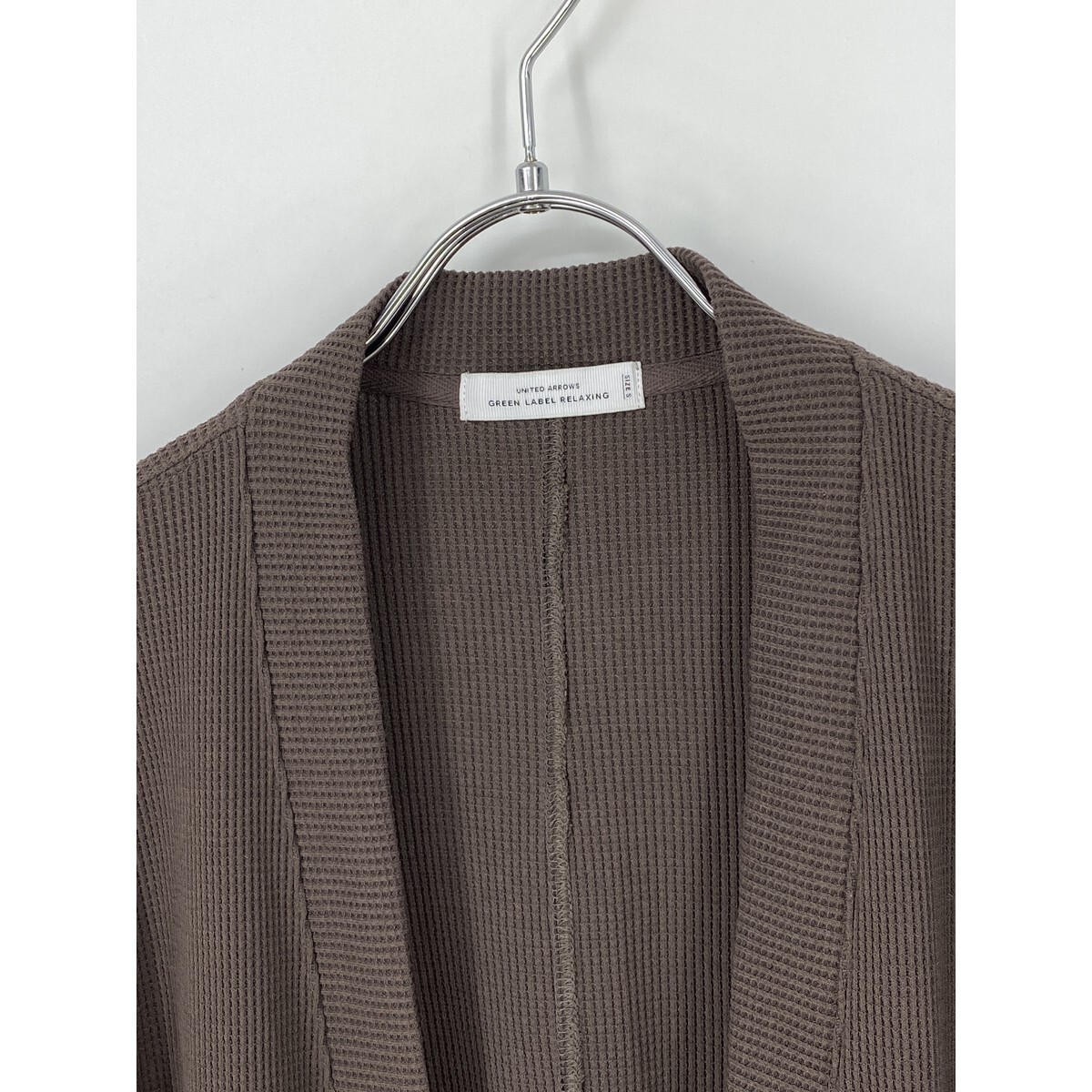 B0297/極美品 UNITED ARROWS ユナイテッドアローズ サーマル 前開き ボタンレス 長袖 ニット リブ カーディガン S 茶 メンズ セーター