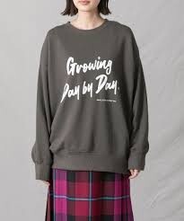 ☆グレディブリリアン AuieF ブラシロゴオーバースエット ロゴ トレーナー グレー size 38 長袖