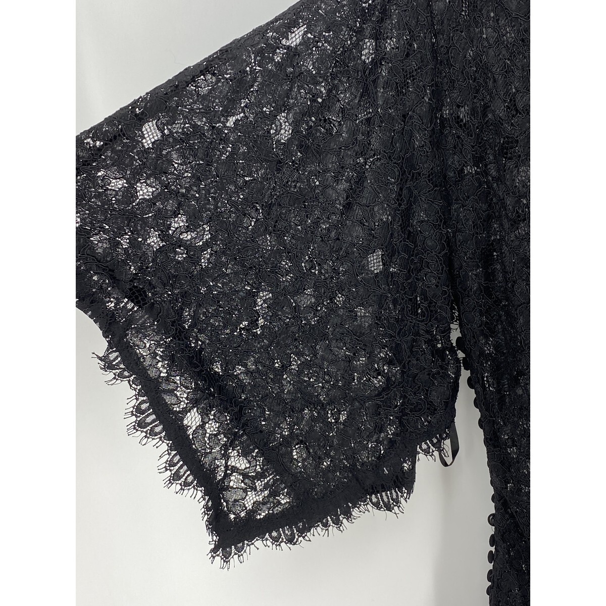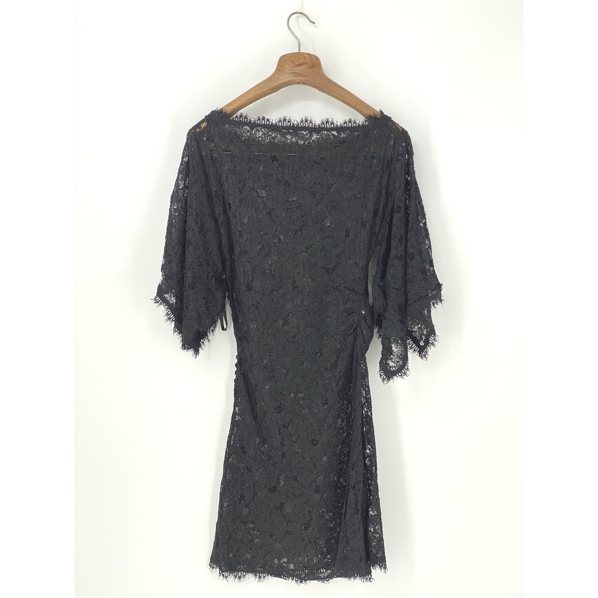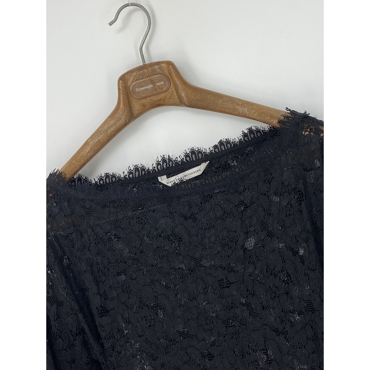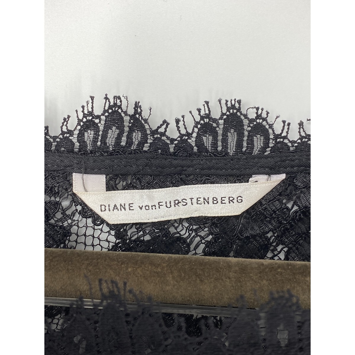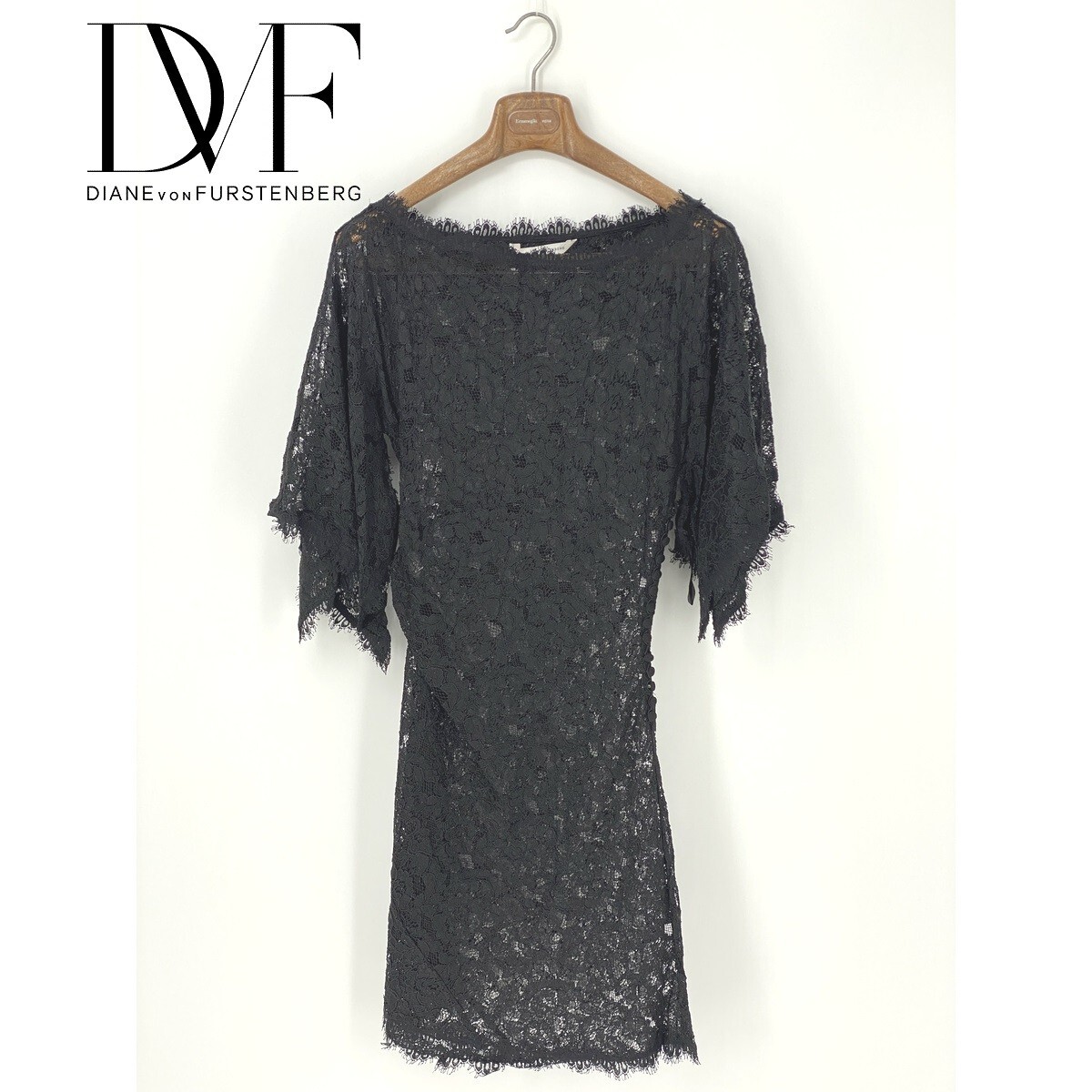 A8546/極美品 春夏 DIANE von FURSTENBERG ダイアン レーヨン 半袖 総刺繍 花柄 総柄 膝丈 ワンピース M程 L程 黒/USA製 レディース