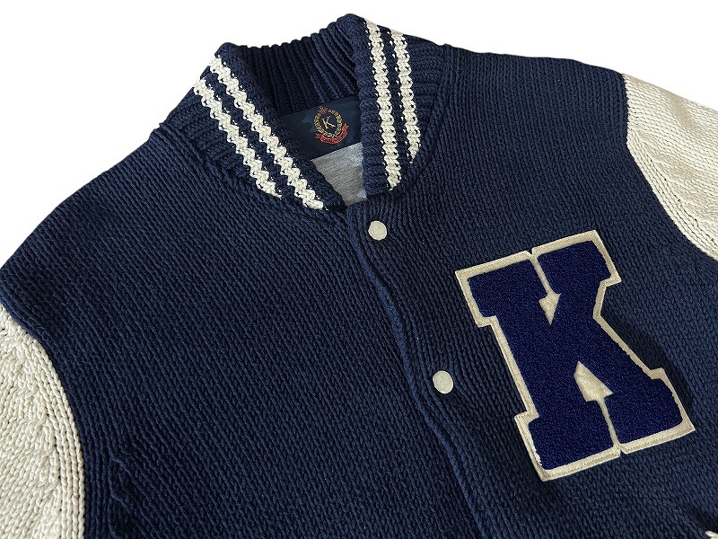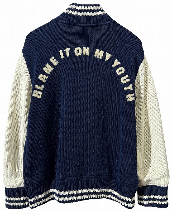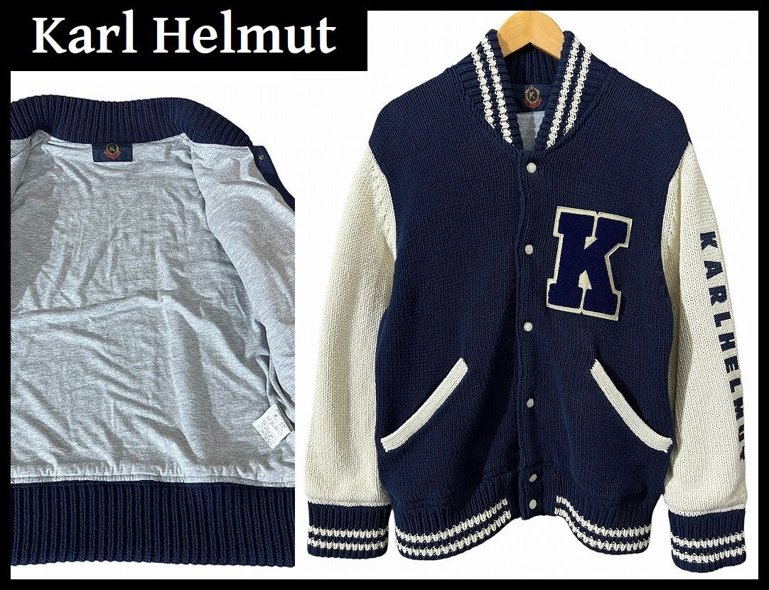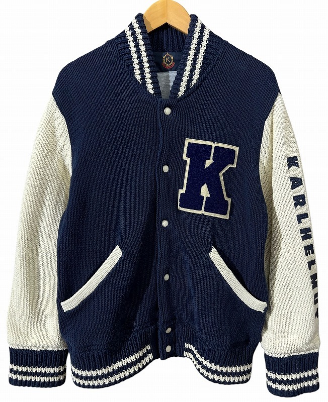 ■ Karl Helmut カールヘルム Kロゴ BLAME IT ON MY YOUTH ワッペン 刺繍 装飾 裏地付 カウチン ニット スタジャン スタジアム ジャケット