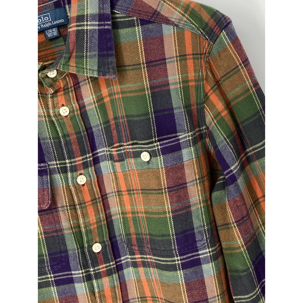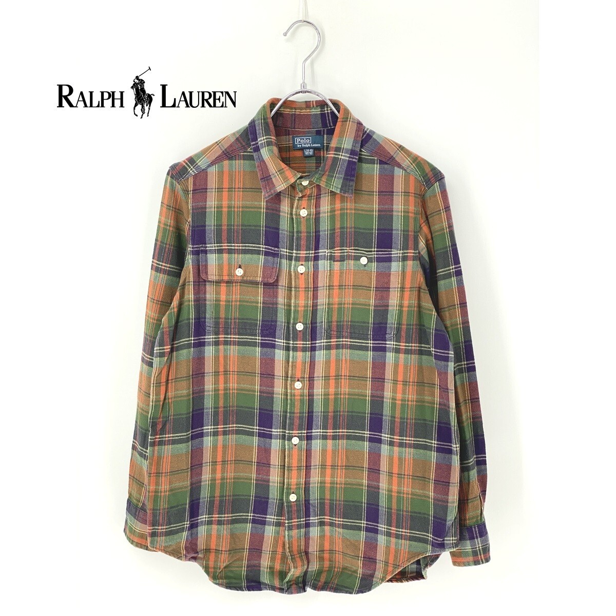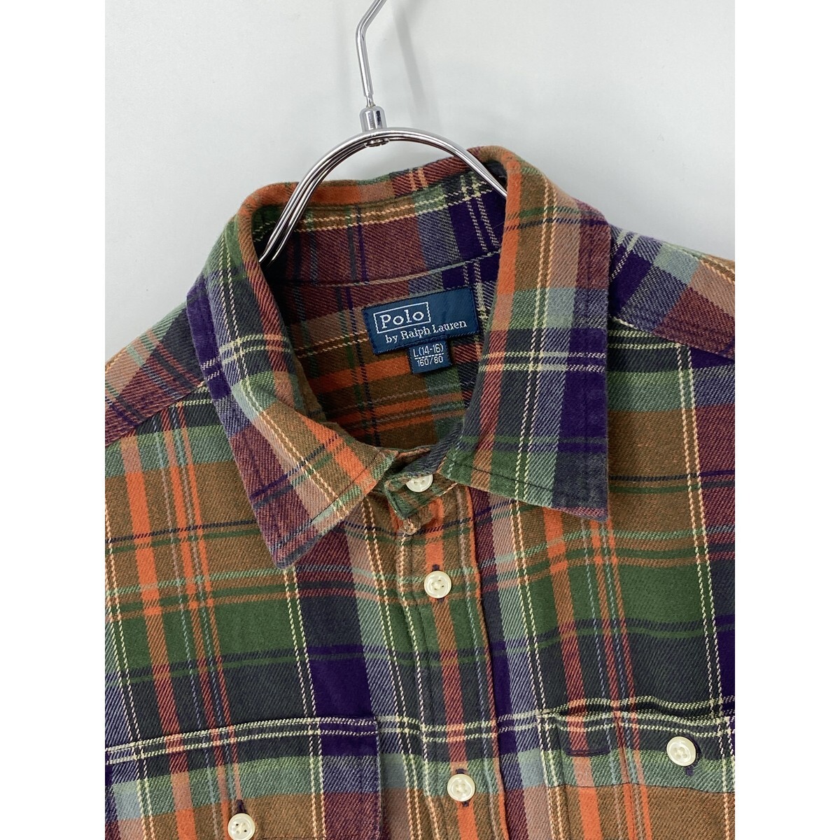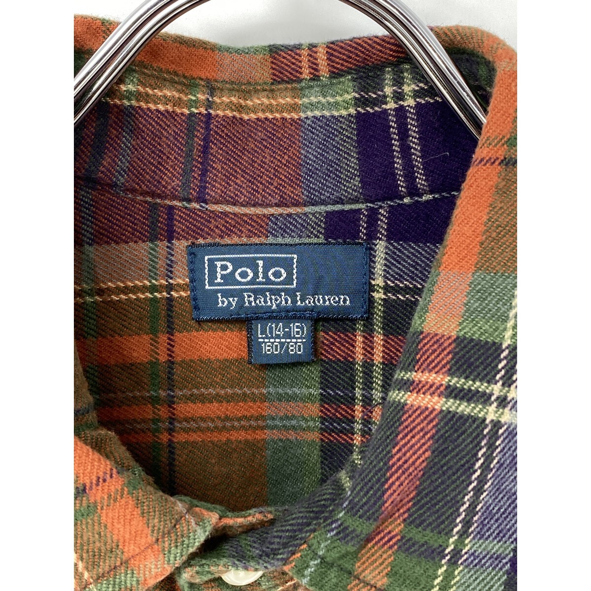 A8608/美品 春夏 POLO RALPH LAUREN ポロ・ラルフローレン コットン 長袖 チェック ウエスタン シャツ L 14-16 マルチカラー レディース