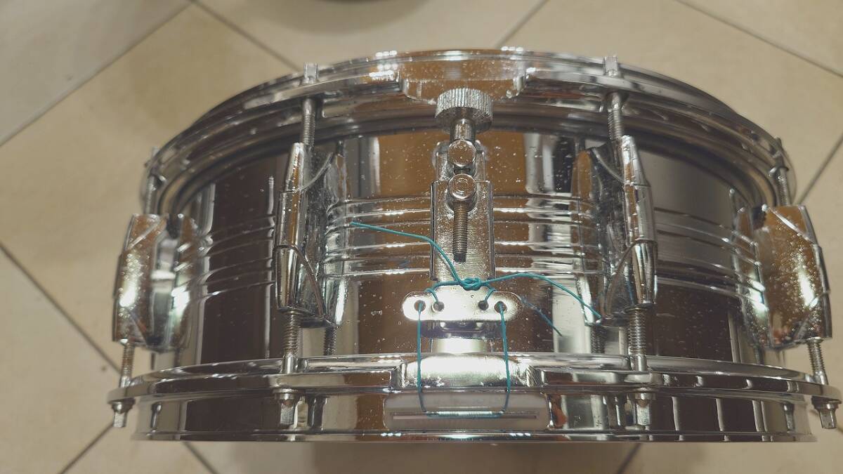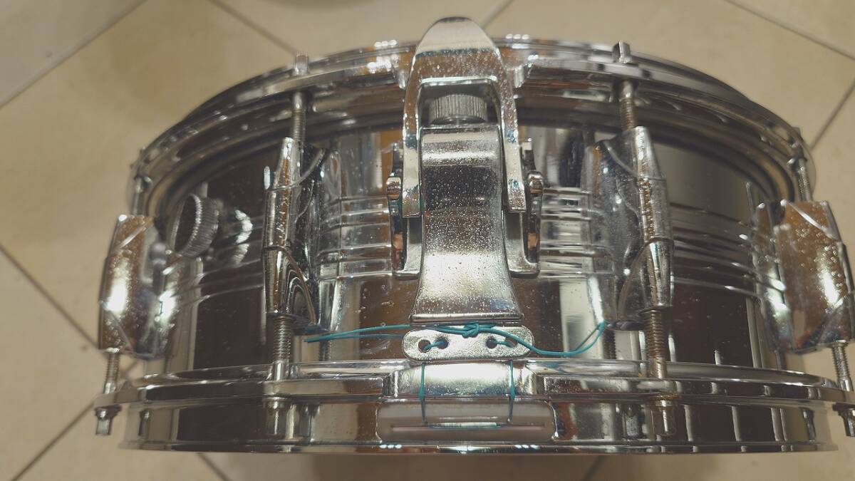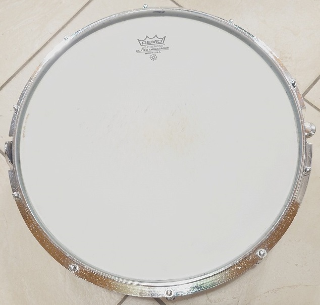 メッキにサビが出ていますが音色には関係ないと思います。とても重いスネアです。