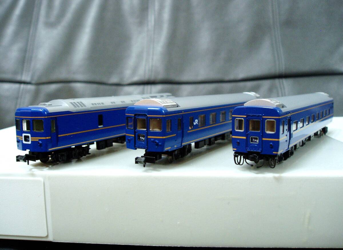 「手持ち車両寄せ集め」のため、出自のセットや製造ロットなどはバラバラです。なので、ボディー色の微妙な違いなど、細かいことを気になさる方には向かない商品です。「とにかく、どうしてもオロネ24 500、オロハネ24 500、オハ25ロビーカーを含む、北斗星・JR東日本編成を揃えたい(場合によっては、定期3往復運転時代の、北斗星3・4号)」という方向きです。