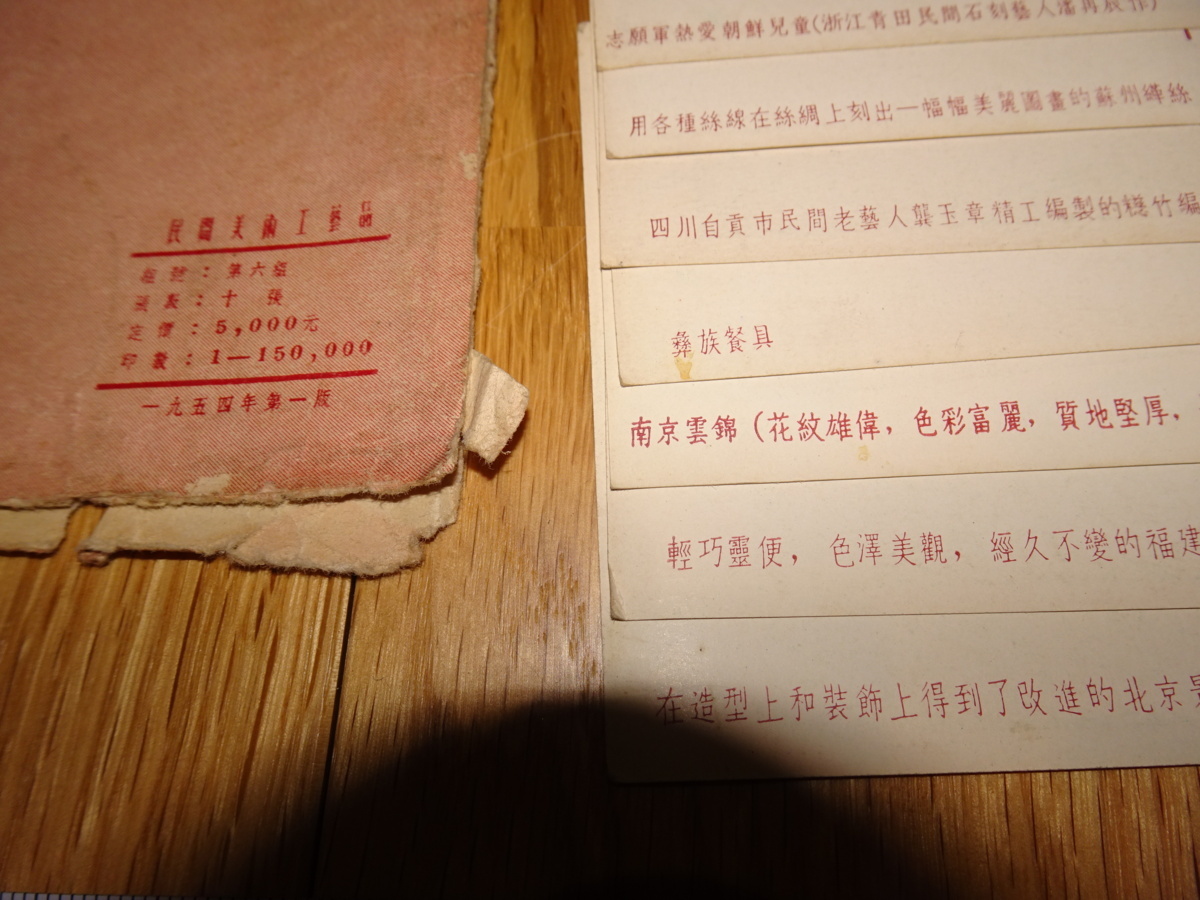 rarebookkyoto H241 中国 美術明信片 ポストカード 第六組 民間美術工芸品 10枚セット 未使用 1954 年 人民郵政 24開 毛主席