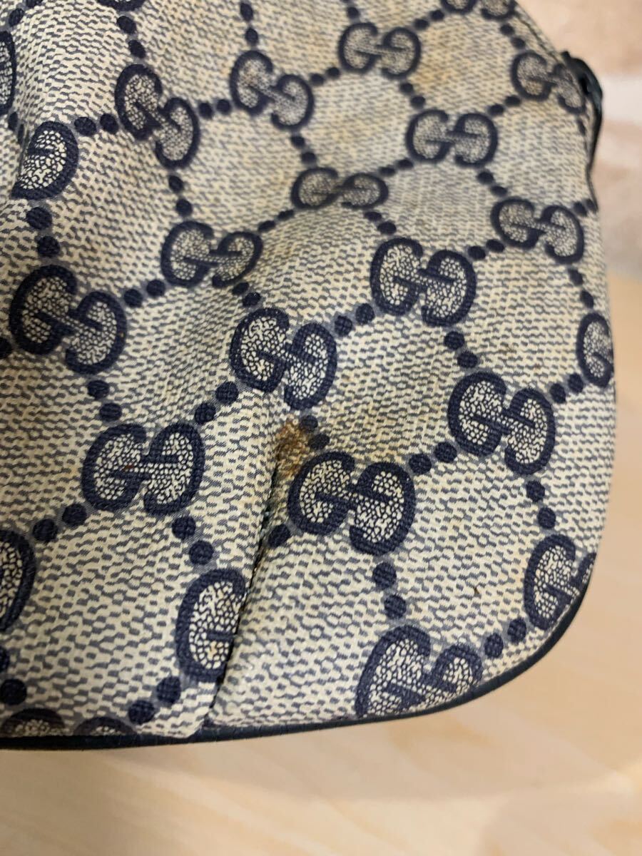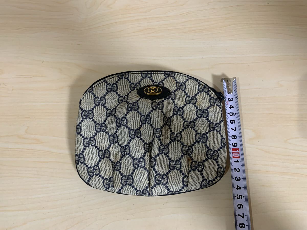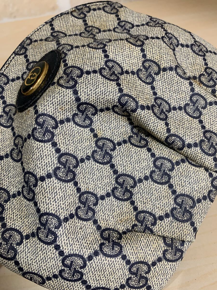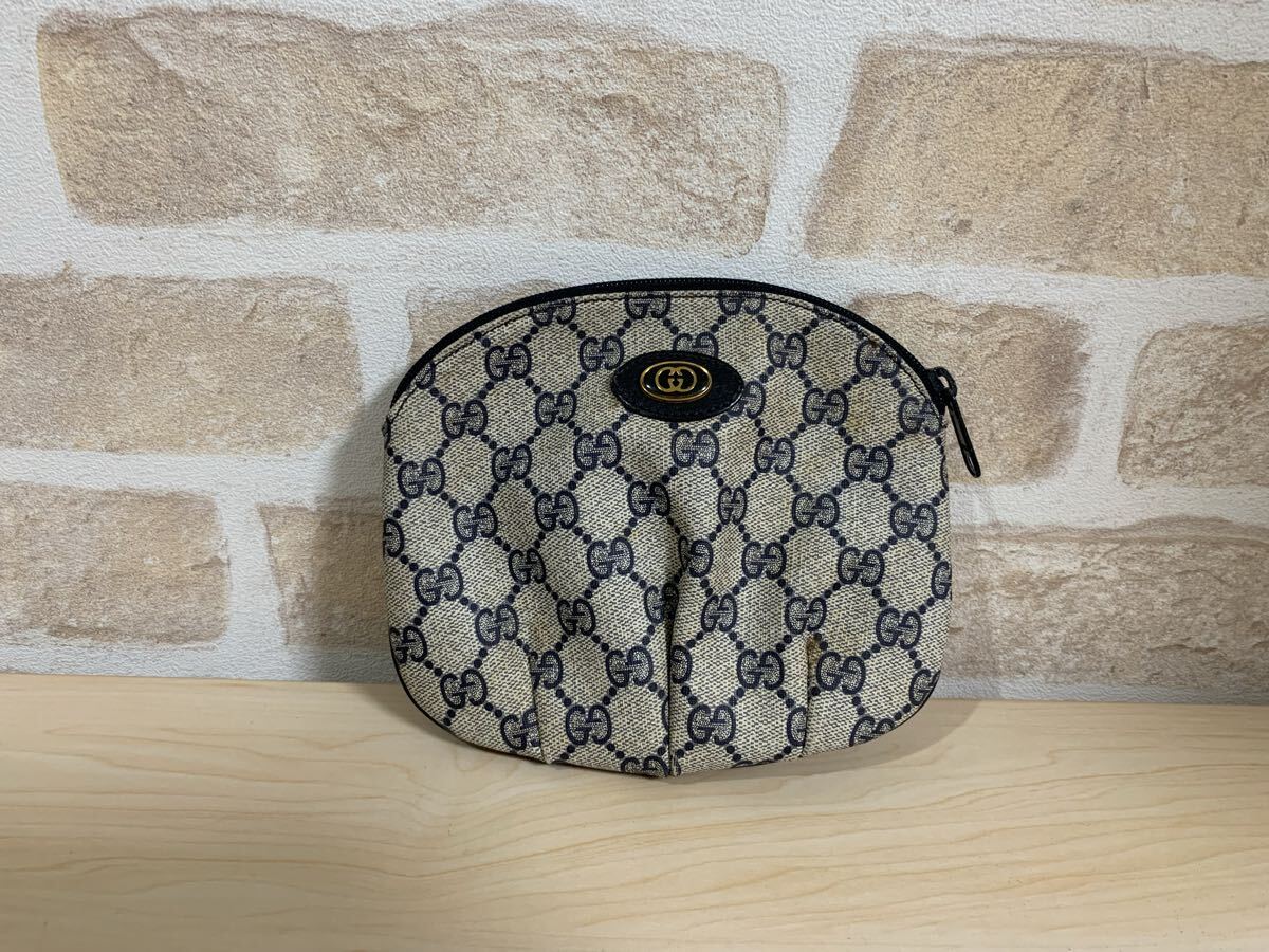 商品:GUCCI グッチ オールド ポーチ GG柄 スブリーム グレー ネイビー 小物入れ 化粧ポーチ ミニバッグ ヴィンテージ 89 01 002