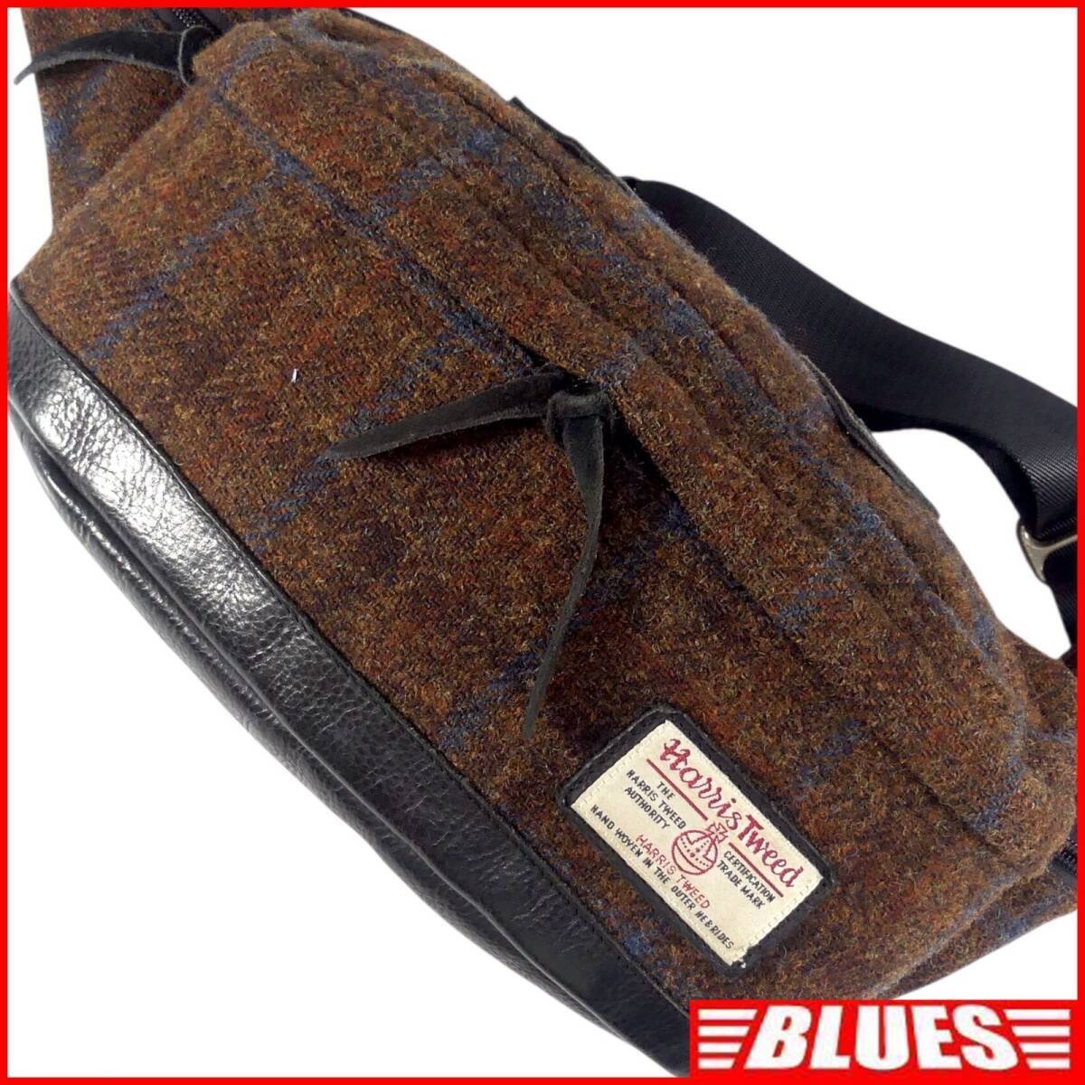 即決★AMERICAN RAG CIE Harris Tweed 別注★レザーコンビ ボディバッグ アメリカンラグシー ハリスツイード 茶 本革 ウール