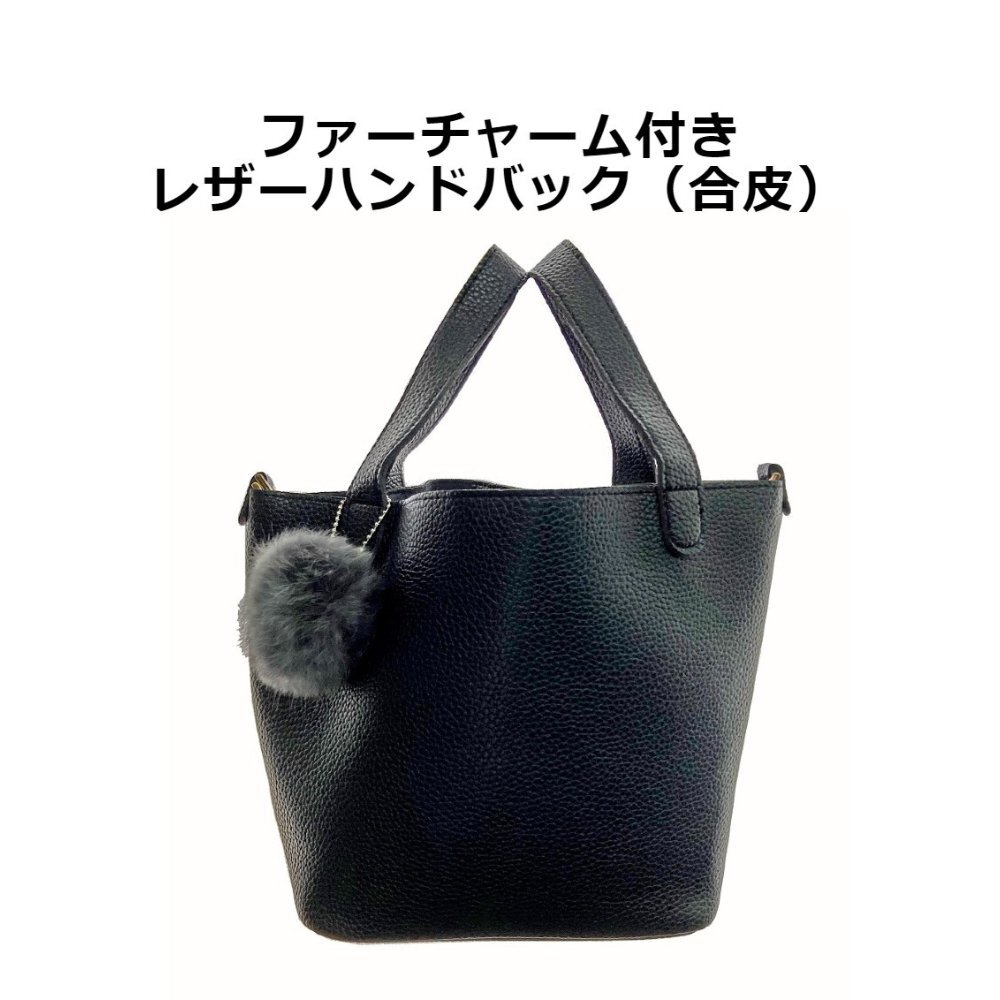 現品限り【ファーチャーム付きレザーハンドバック(合皮)】送料無料