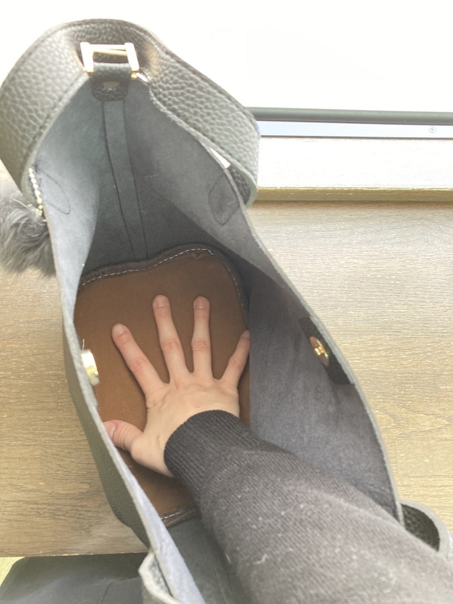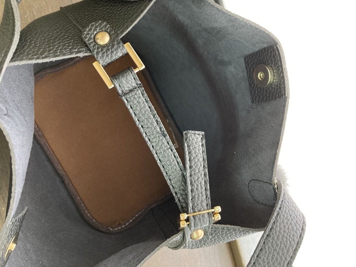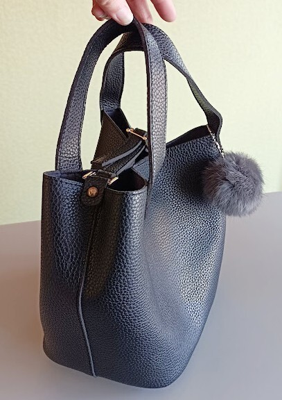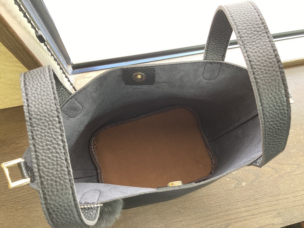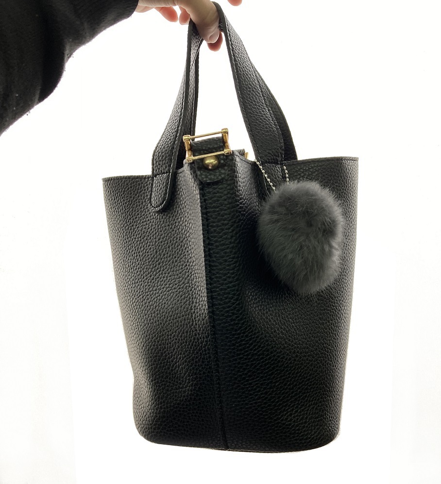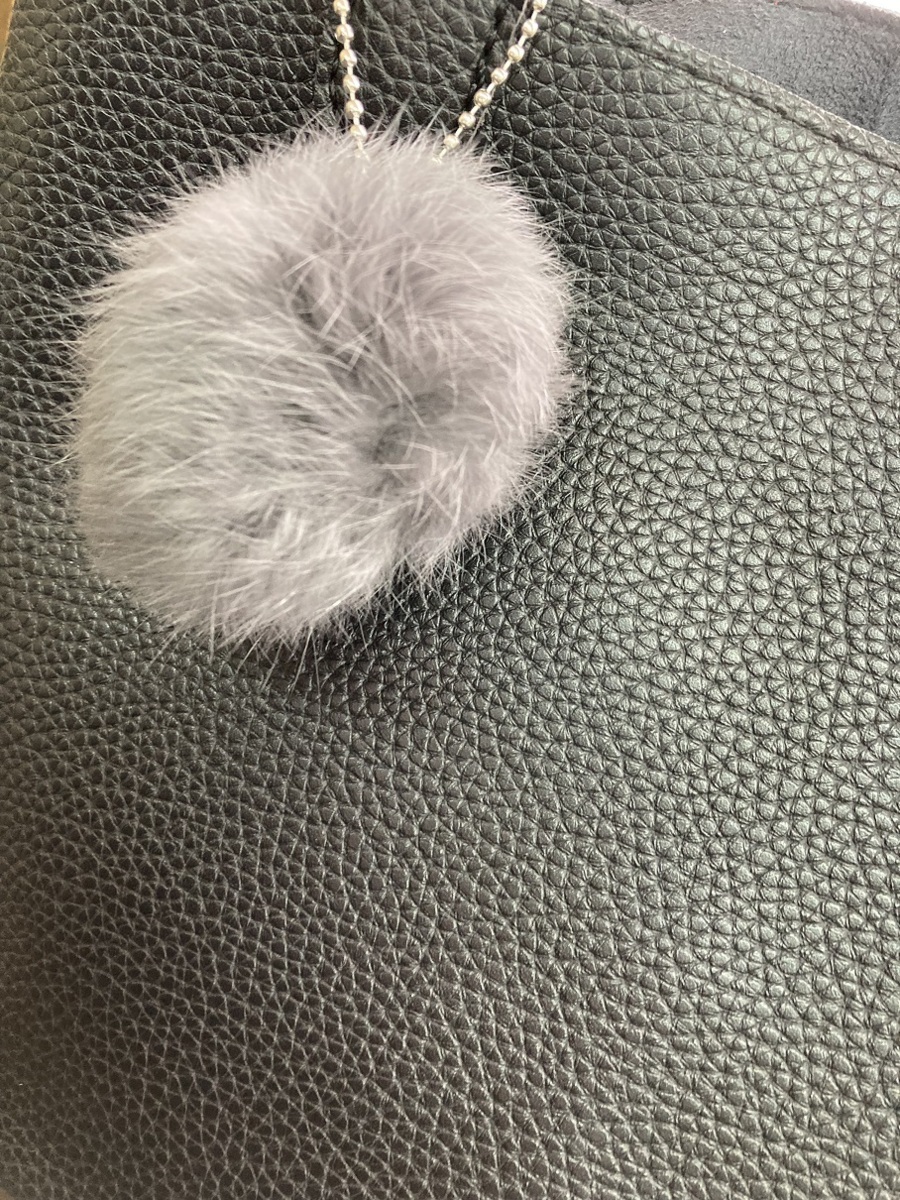 取り外し可能なファーチャームがついた大人ハンドバック!