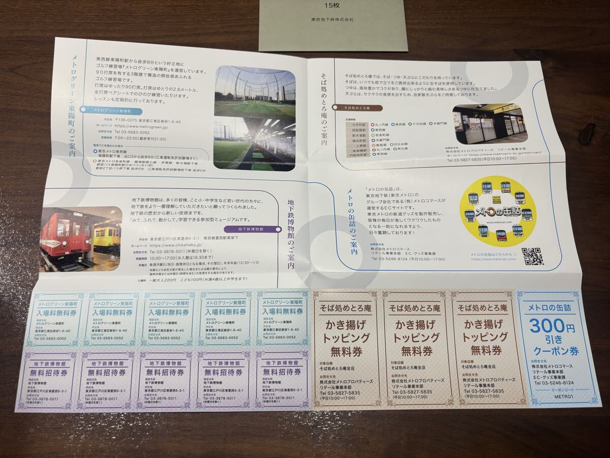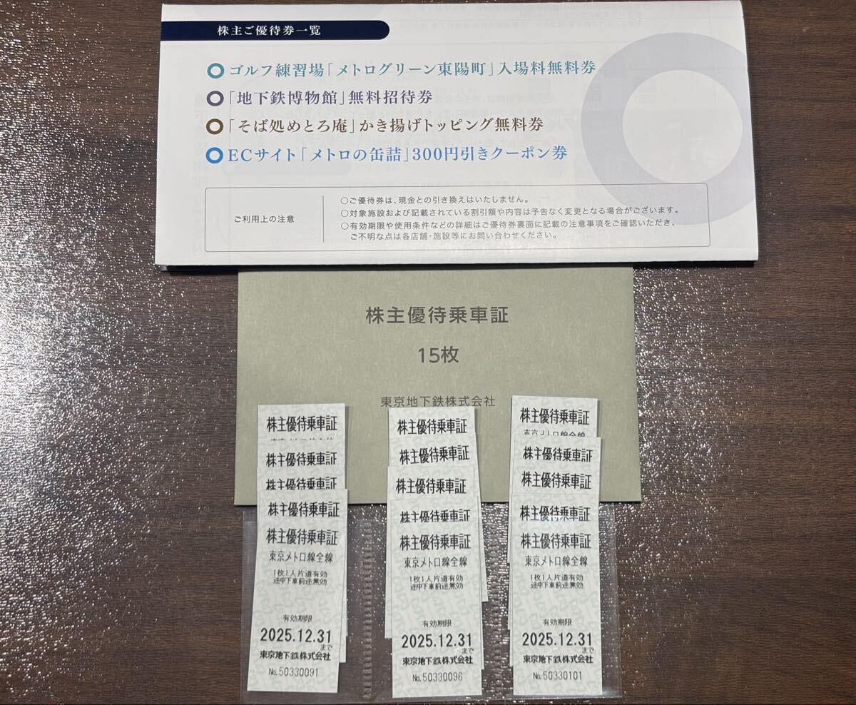 東京地下鉄株式会社 東京メトロの株主優待乗車証15枚と株主優待券のセットです。