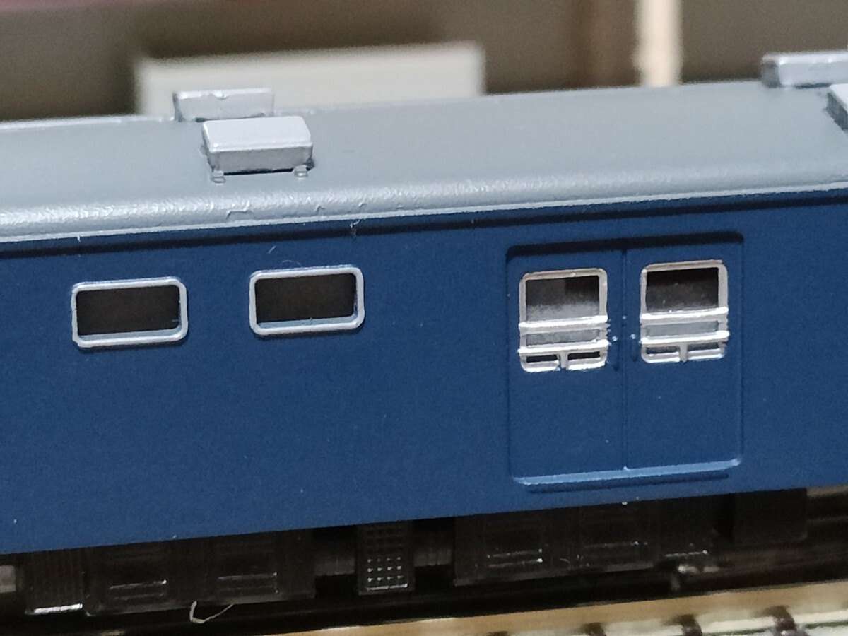 スッキリした警戒帯の塗装や難しいアルミサッシ、Hゴムの塗り分けも綺麗に仕上げられている所が目を引きます。