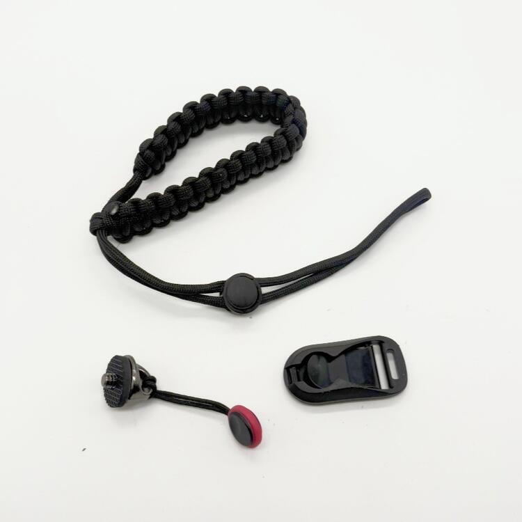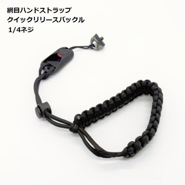 ■カラー:ブラック ■全 長:約40cm パッケージ内容: ・ 編み目ハンドストラップ×1 ・ 紐穴付き1/4ネジアダプタ×1 ・クイックリリースバックルセット×1 |