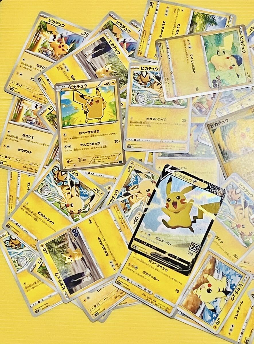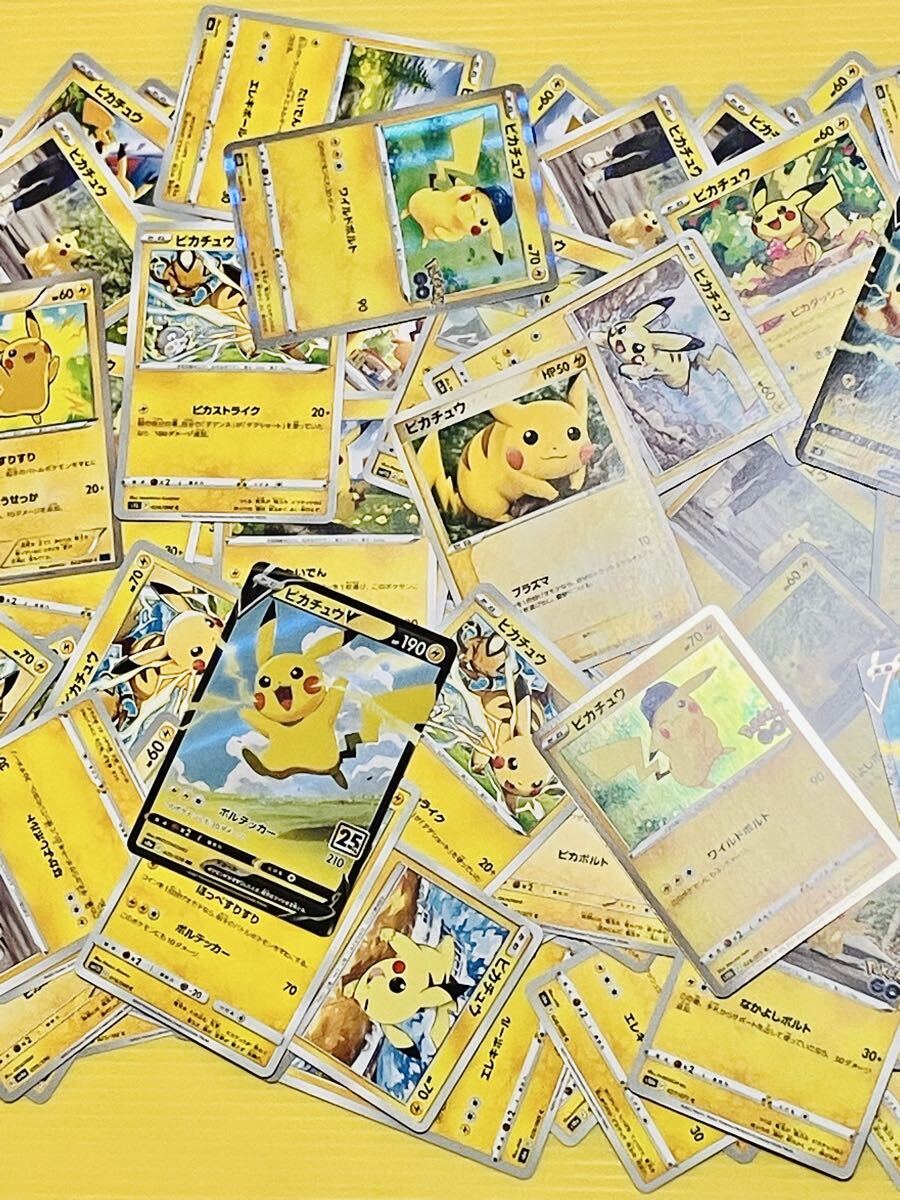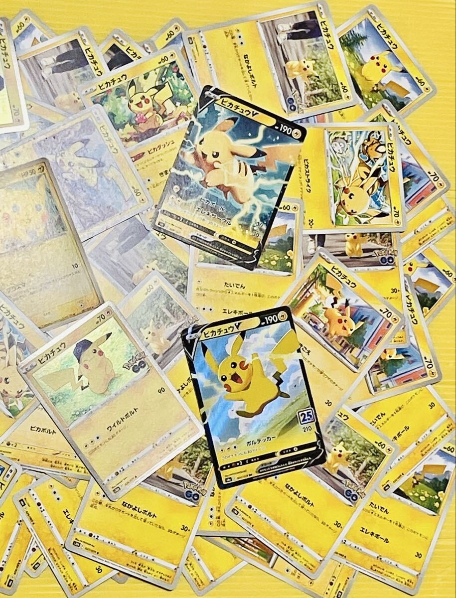 全てピカチュウのポケモンカードです。数え間違えがなければ、合計110匹以上のピカチュウがおります。