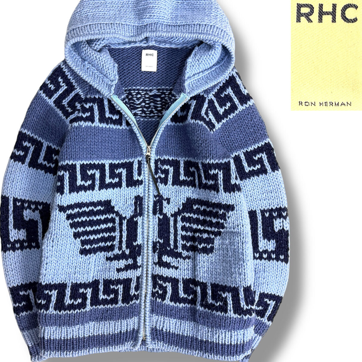 J6265 超美品 RHC Ron Herman カウチンニットパーカー ブルー系 L ロンハーマン