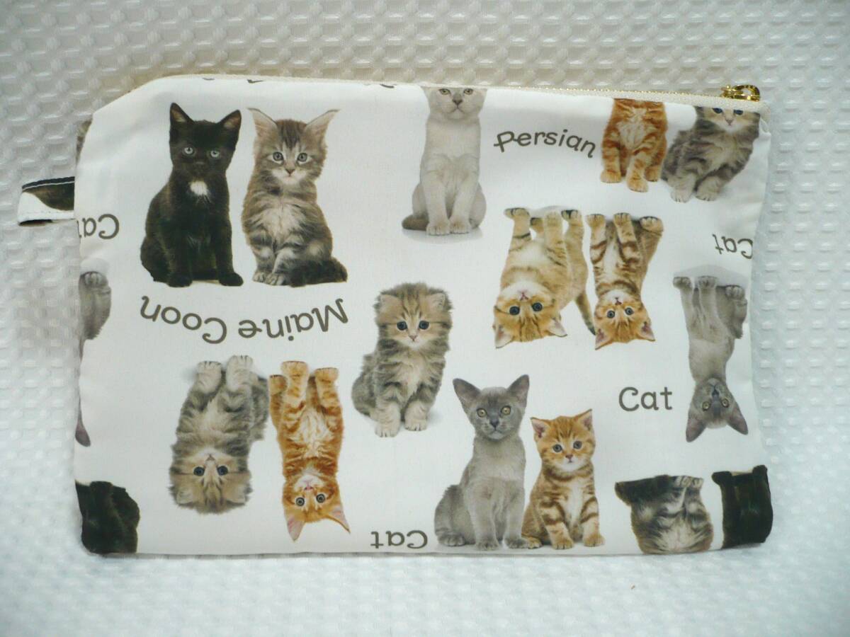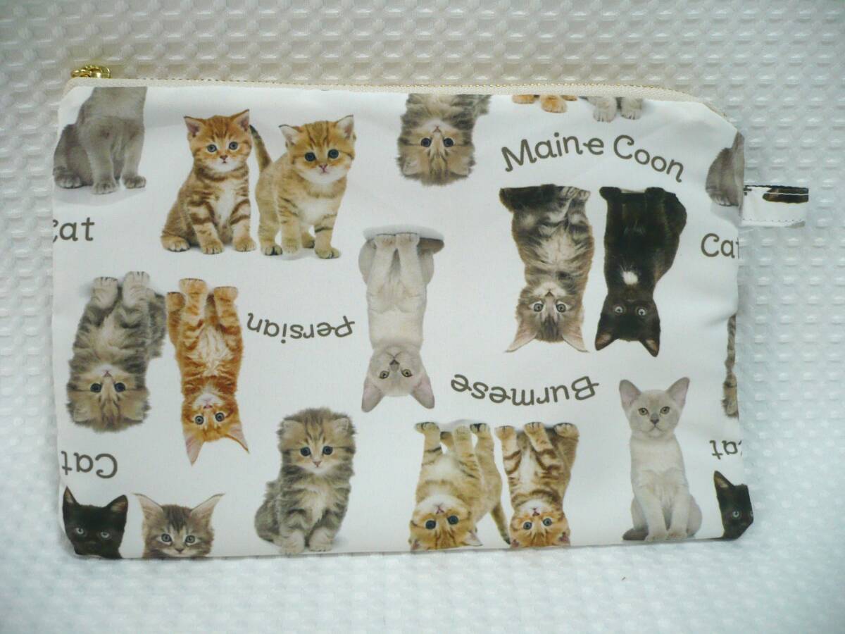 新品の可愛いねこ柄ポーチです。縦15cm×横21.5cmほど。ハンドメイド。マチなし。裏地付き。接着芯なし。20cmファスナーでの開閉デザイン。画像を見て気に入ってくれた方からのご入札をお待ちしています。落札後はノークレーム・ノーリターンでお願いします。他の出品もご覧下さい。