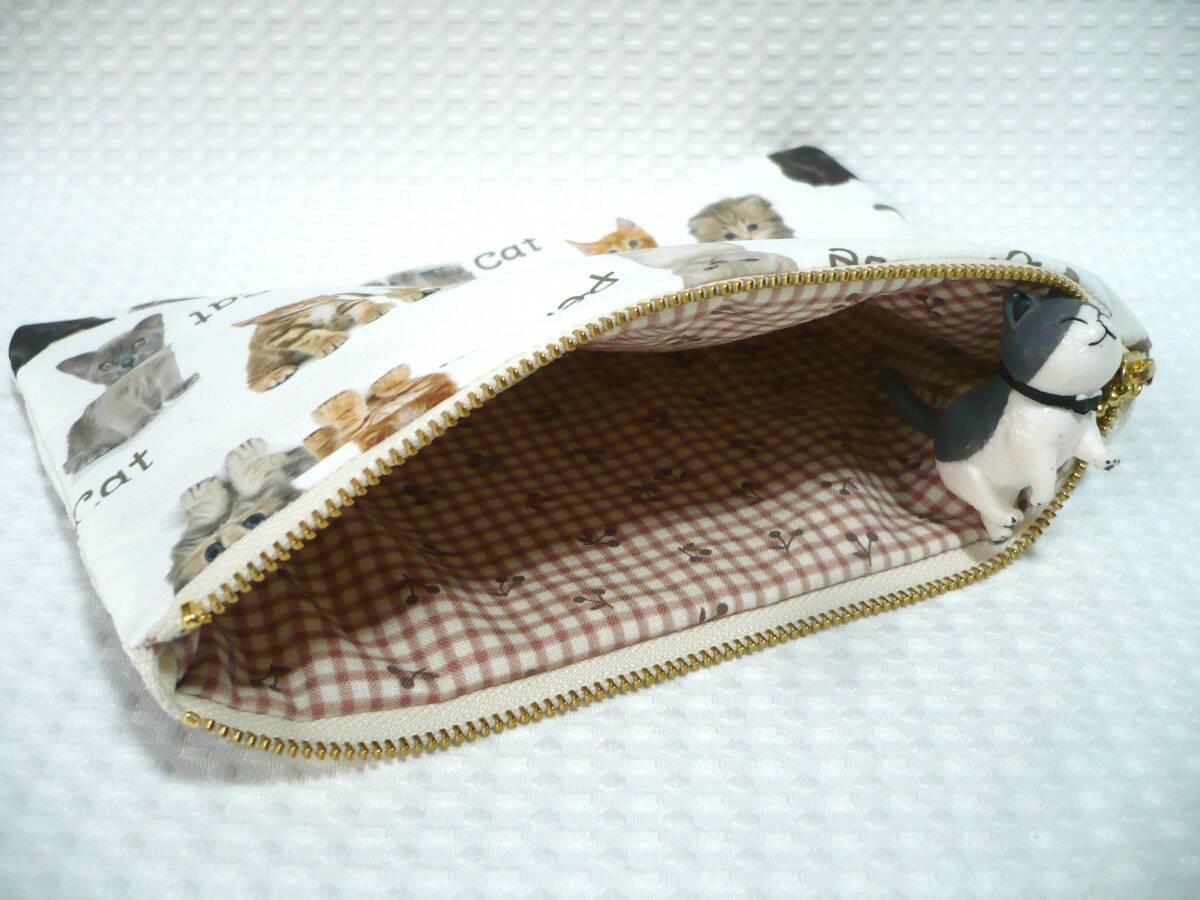 新品・ぺったんこ可愛いねこ柄ポーチ・ハンドメイド③