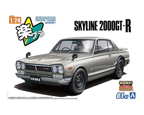アオシマ 楽プラ スナップカー No.1-SI 1/24 KPGC10 スカイラインHT 2000GT-R 1970 シルバー(組立キット) 定価¥3400(税抜)