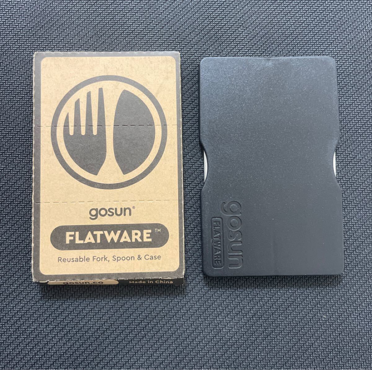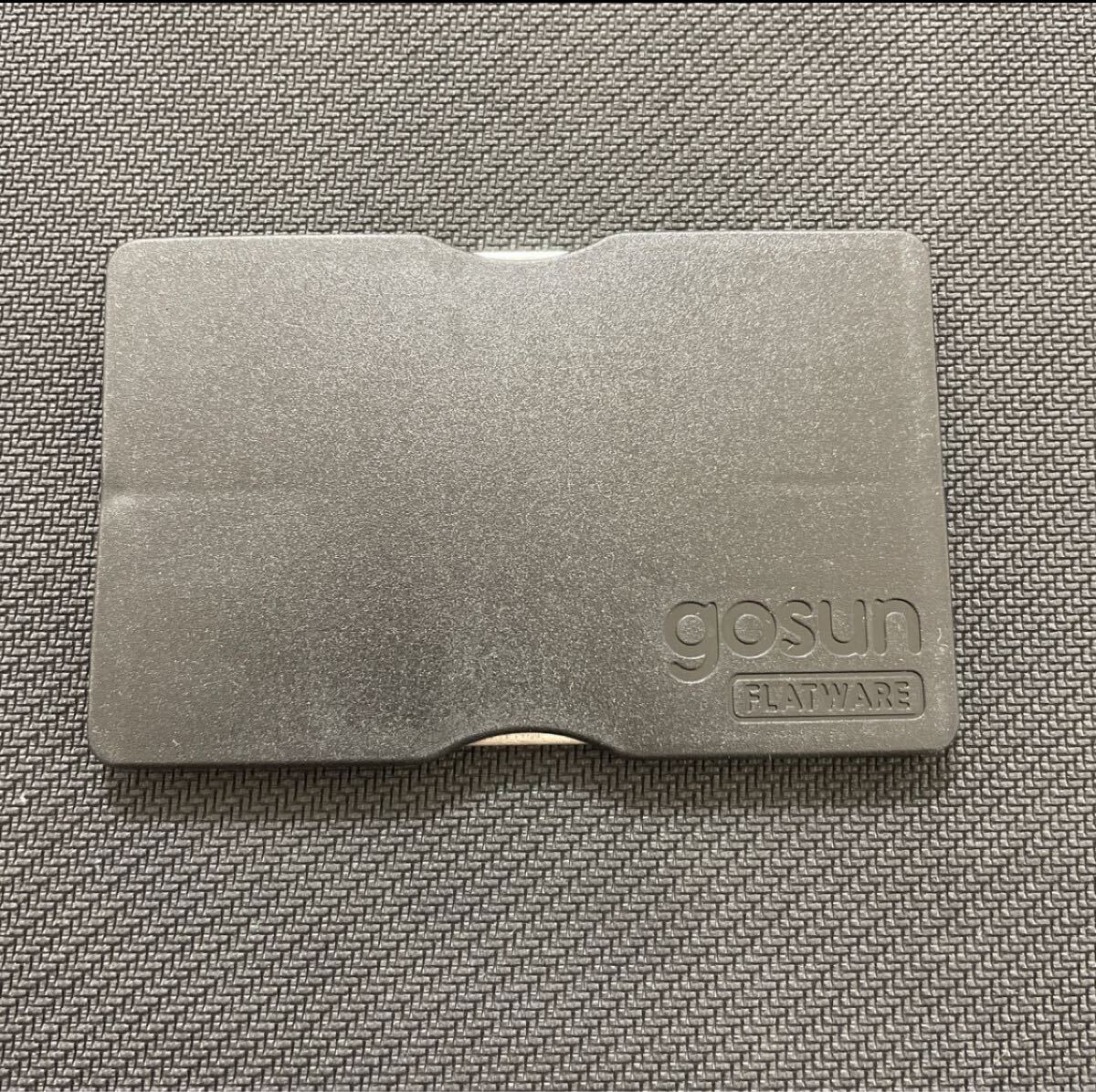 携帯に便利なカードサイズに収まるスプーンとフォークになります。カードケースはプラスチック製、スプーンフォークはステンレス製になります。