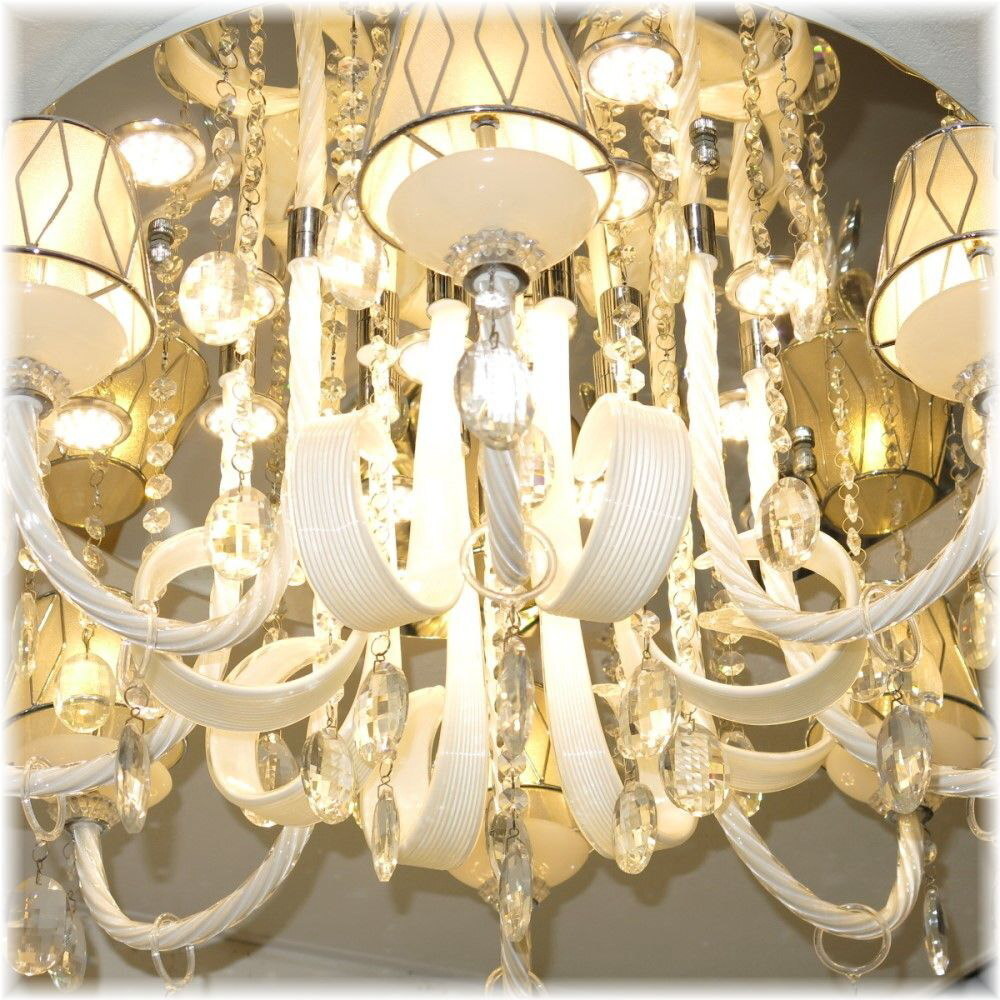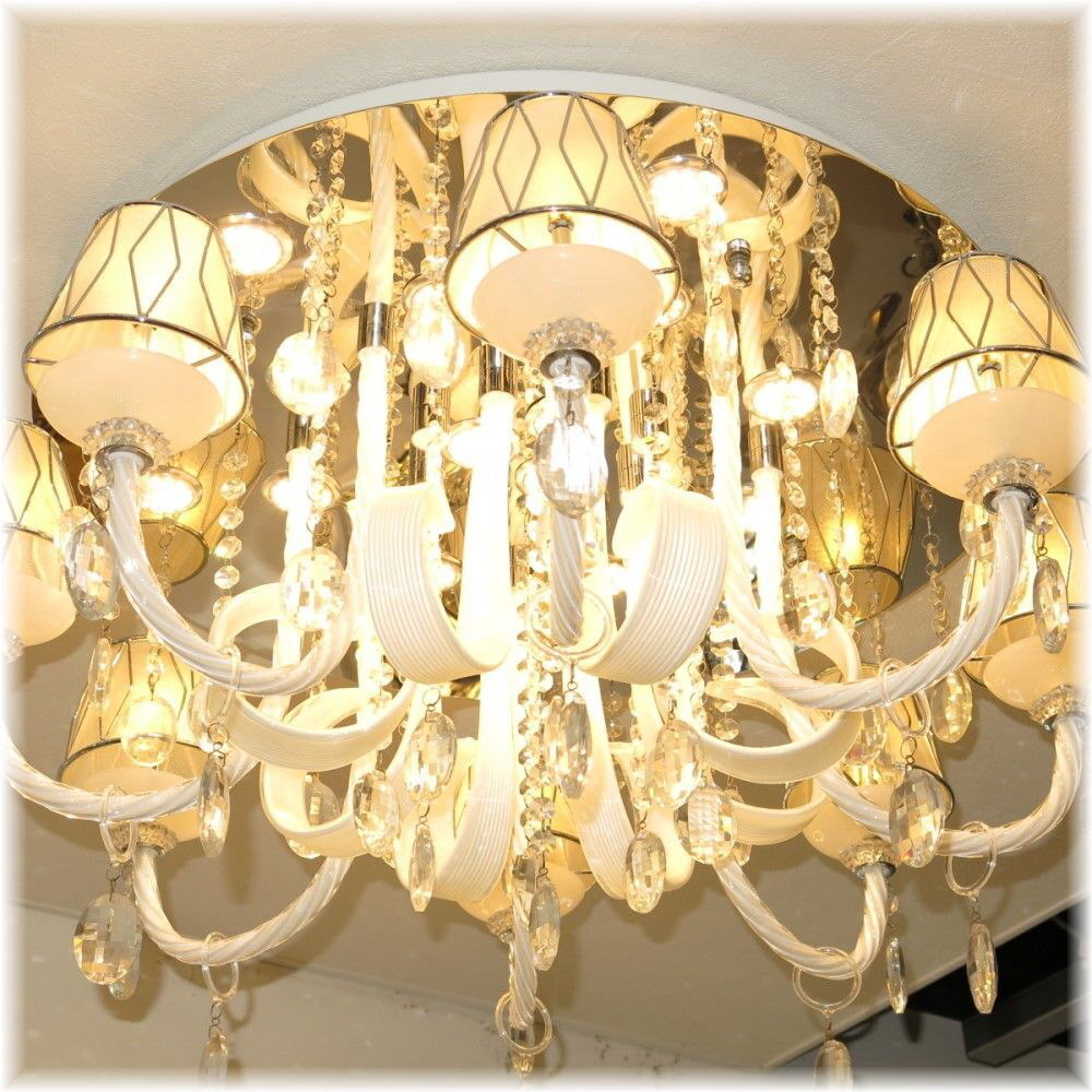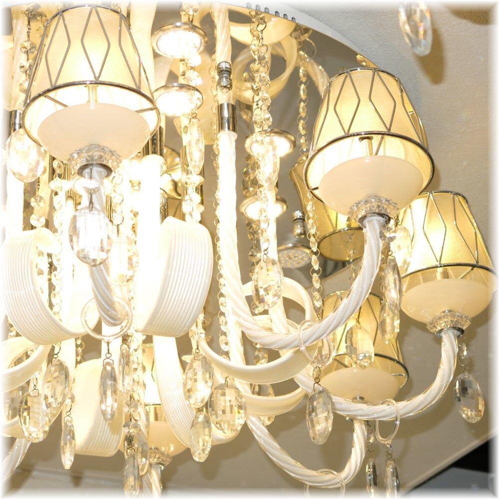 ![]() 【送料無料!】★超激安LED照明!★新品 綺麗な スワロフスキー風 クリスタル シャンデリア LED&リモコン付き ●LED球8個&LEDダウンライト17個(¥30000-相当)お付けいたしまして驚きのプライス! ●消費電力わずか100ワットで1000ワットの明るさ!! ☆スワロフスキー風上質水晶ならではの最高の輝きを放つ新品クリスタルシャンデリア ☆添付画像では肉眼で見る本来のクリスタルの輝きをご確認いただけませんが、合計25灯のLED電球が上質クリスタル水晶を通し光の屈折で光の持つ本来のカラーをかもし出しダイヤモンドのように輝きながらワット数以上の明るさでお部屋を照らします ☆スタイルは飽きの来ないシンプルなデザインでホワイトのデザインガラス&シェードともよくマッチしとても綺麗なシャンデリアです ☆とても明るく消費電力わずか100ワット・1000ワットの明るさでお部屋全体を照らします ☆リモコンも付属しており全25灯全灯を含め7段階の切り替えが可能です ☆シャンデリア本体調光にも対応しておりお好みの明るさに調整可能です ※調光が必要の場合は汎用調光器と調光対応LED(1個¥200-アップ)が必要でリモコンとの併用は不可です ☆調光ご希望の場合はご注文後お申し付け下さい ☆リビング等に最適なゴージャスでとても綺麗なクリスタルシャンデリアを是非この機会に! ☆サイズ・直径約75cm 高さ約39cm 重量約10キロです ☆付属電球 ☆LED電球8個(暖色・明るさ20ワット消費電力2ワット・16lm/W) ☆LEDダウンライト17個(暖色・明るさ50ワット消費電力5ワット・46lm/W) ☆白色LEDも出品させて頂いております、商品画像は暖色LEDを装着し撮影しております ☆取り付けに関しましては引掛けシーリング対応不可直付けタイプになります ![]() | |