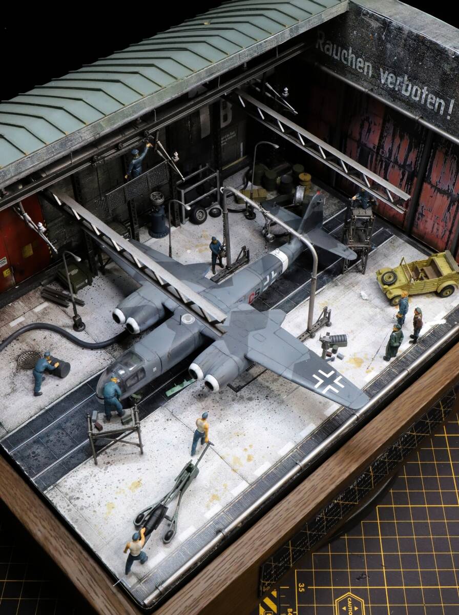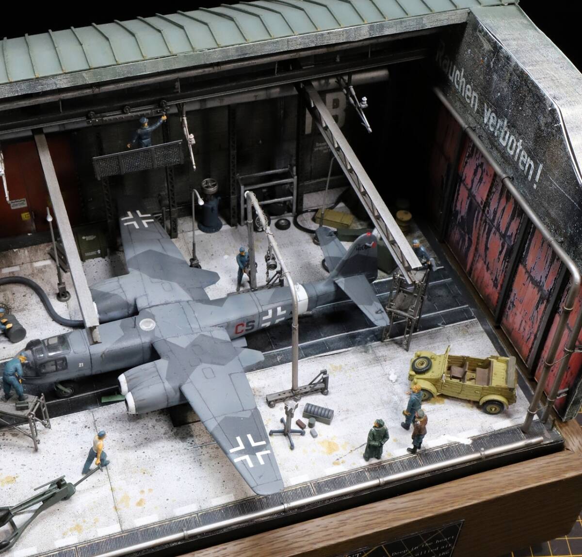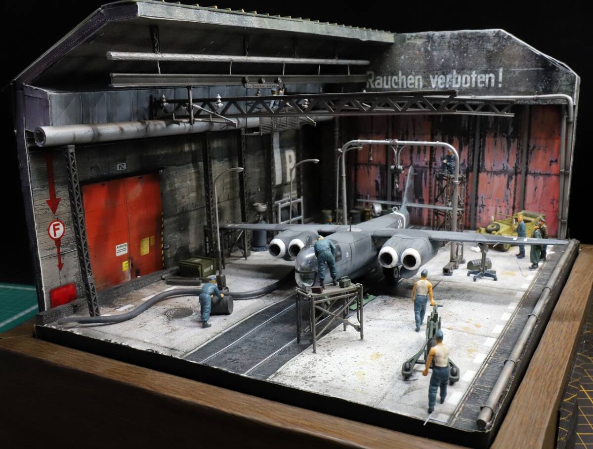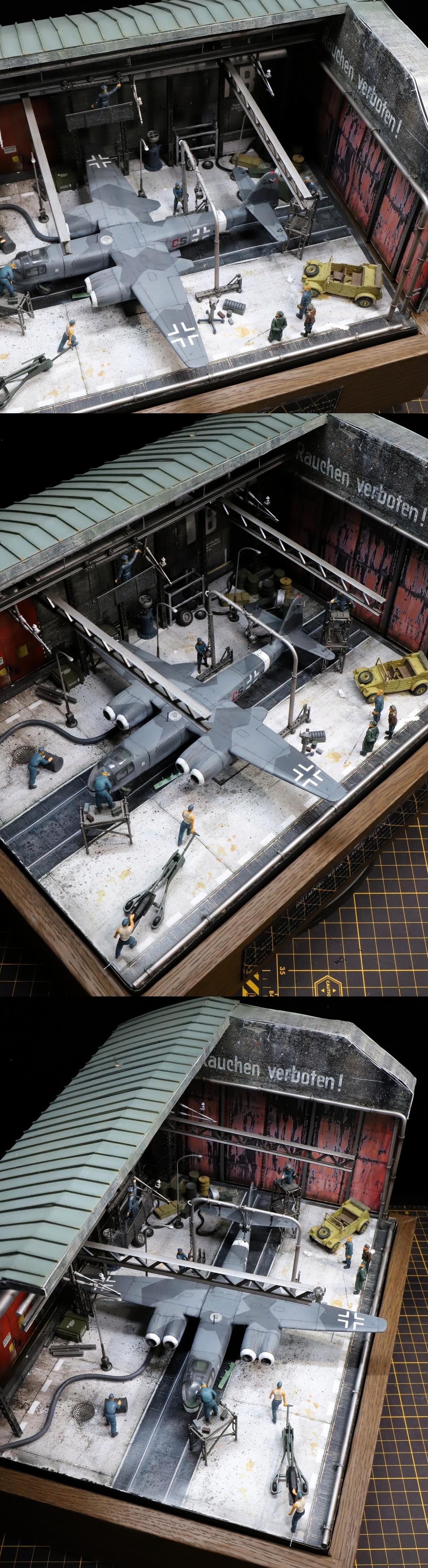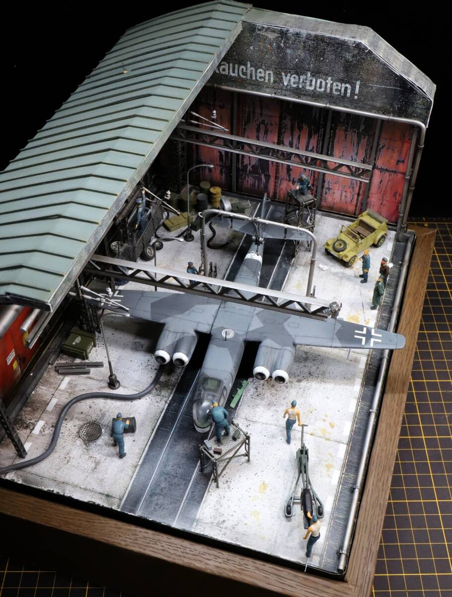 1/72 ドイツ軍 Ar234 ジェット爆撃機 格納庫ジオラマ 制作完成品 (幅300mm×奥行230mm×高さ240mm) | |