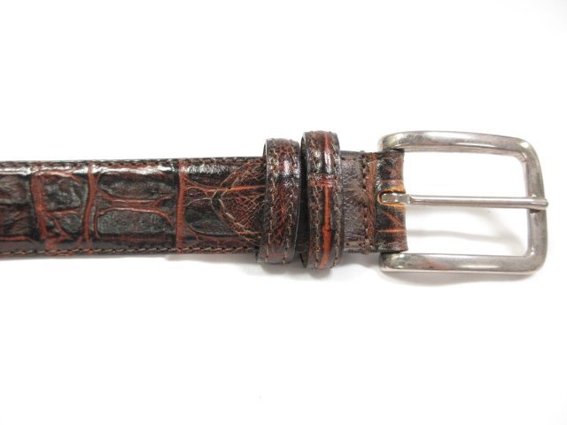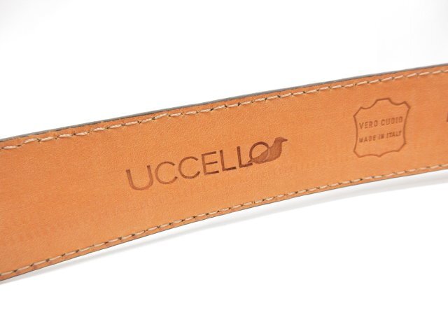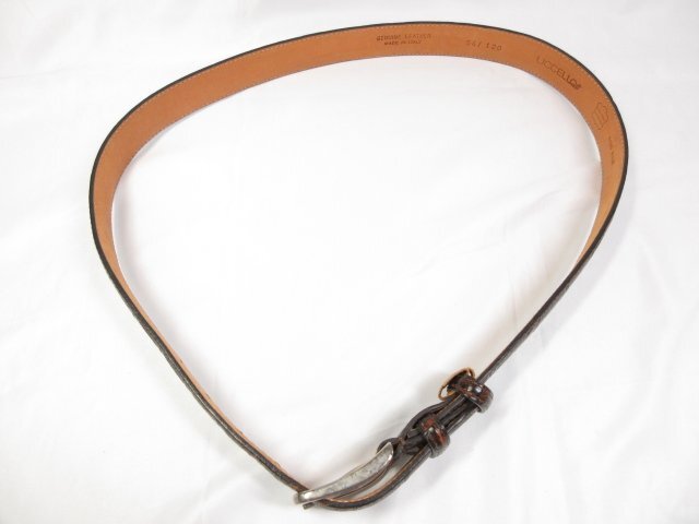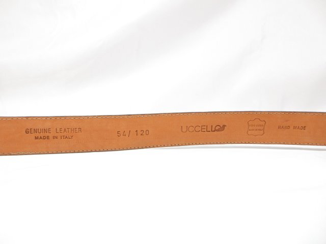 超美品 【ウッチェロ UCCELLO】 クロコ型押しレザー ベルト (メンズ) size54/120 ブラウン系 ◇30ME7725◇