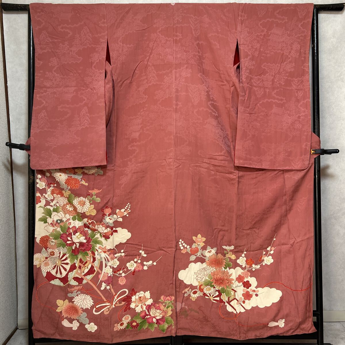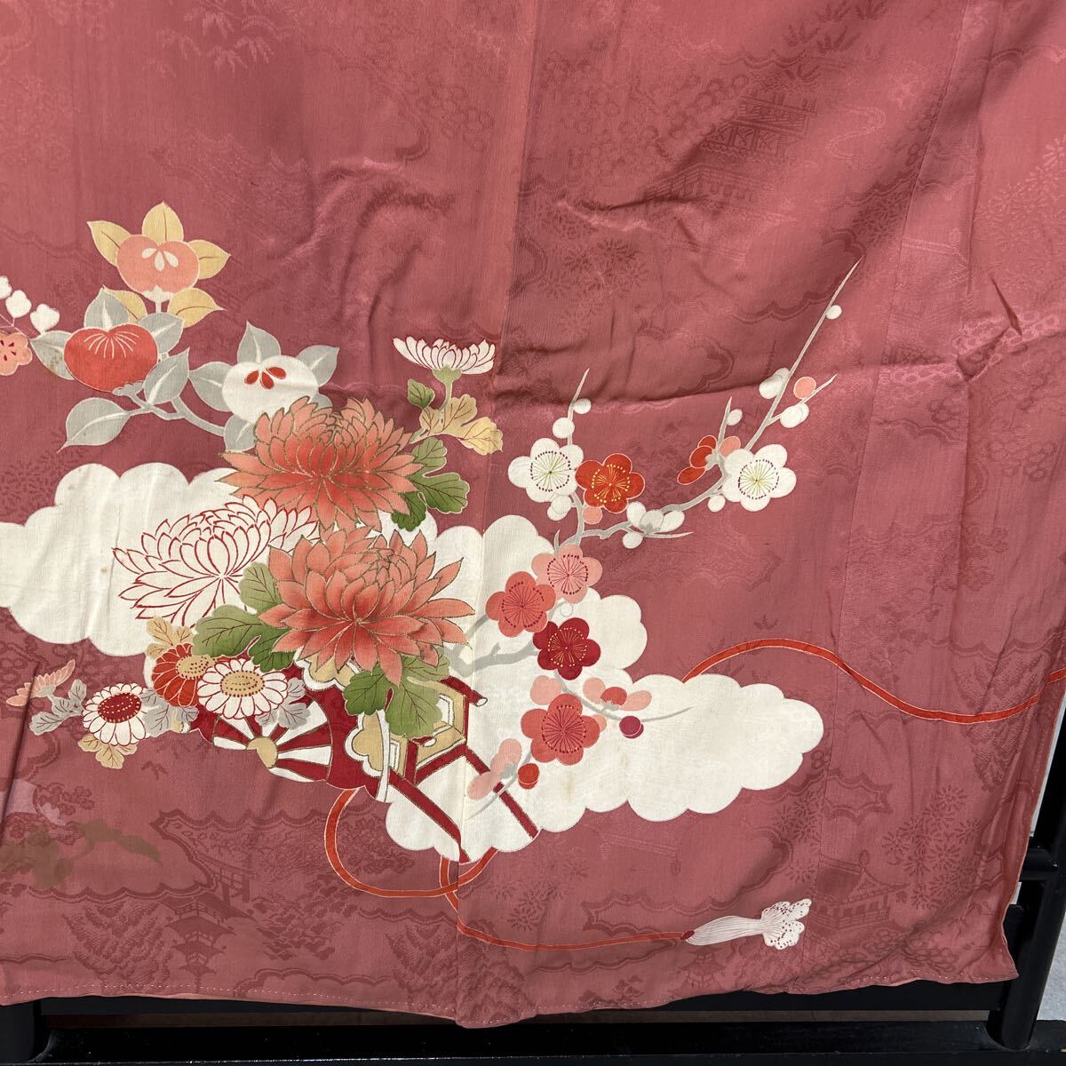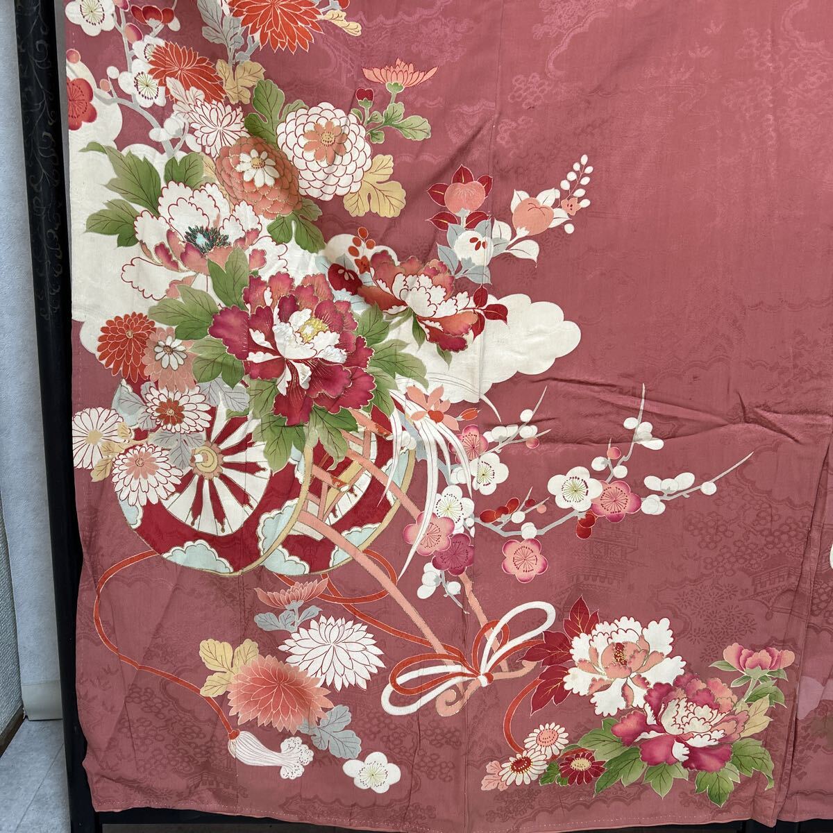 アンティーク 着物 付け下げ 花 金 花車 正絹 昭和レトロ 大正ロマン モダン 和洋折衷コーデ リメイク 25こ07-04t