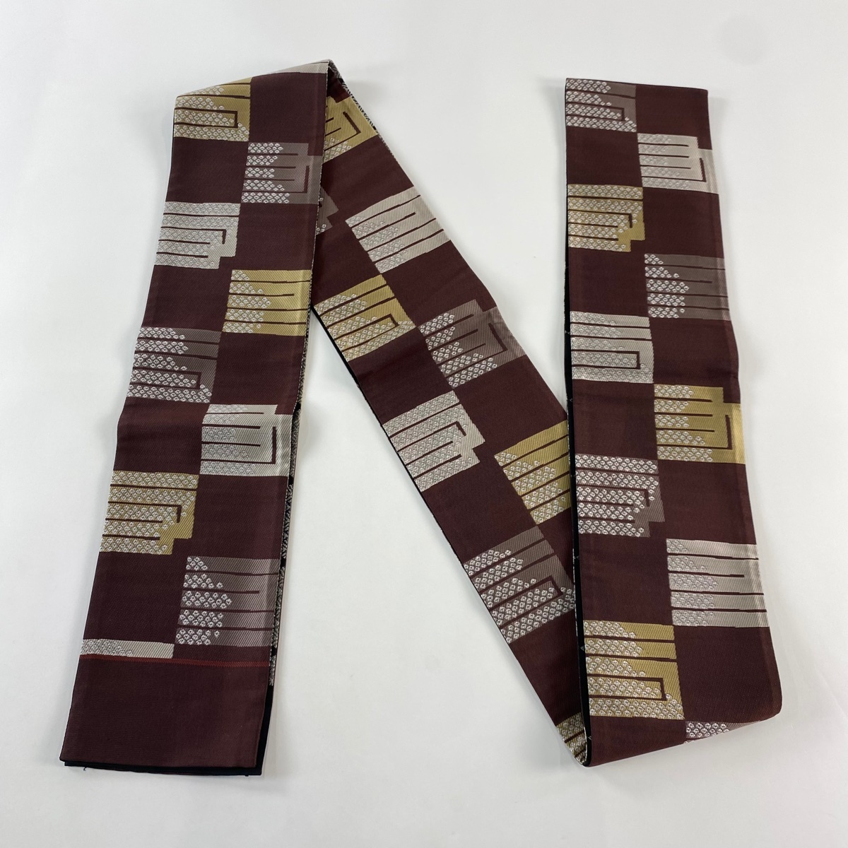 半幅帯 美品 秀品 源氏香 疋田 小豆色 正絹 【中古】 |