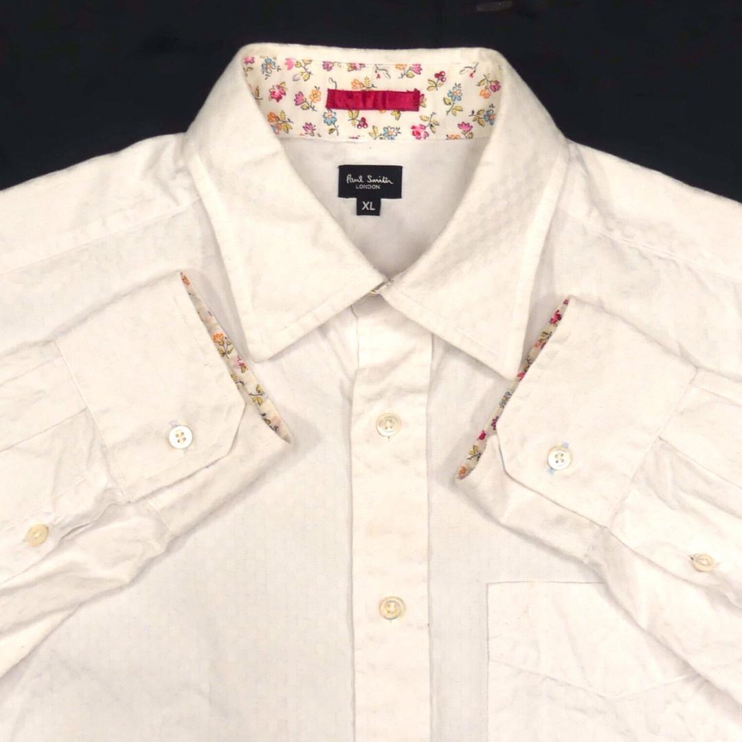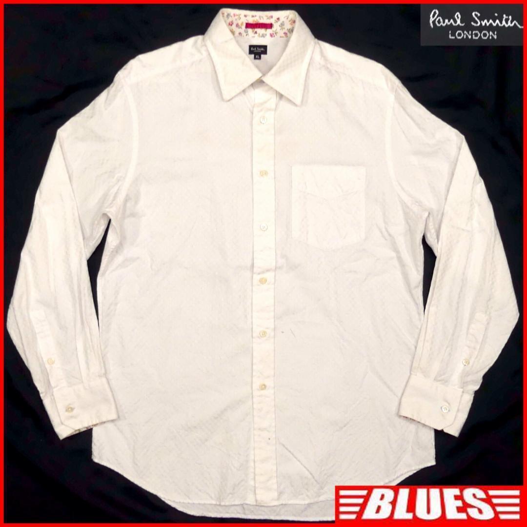 即決★Paul Smith★メンズ XL シャツ ポールスミス XL チェック 長袖 白 花柄