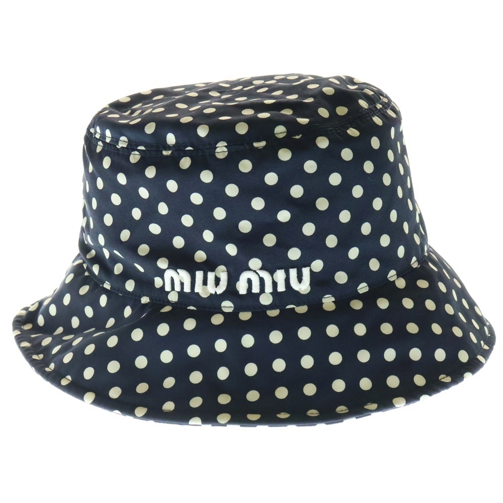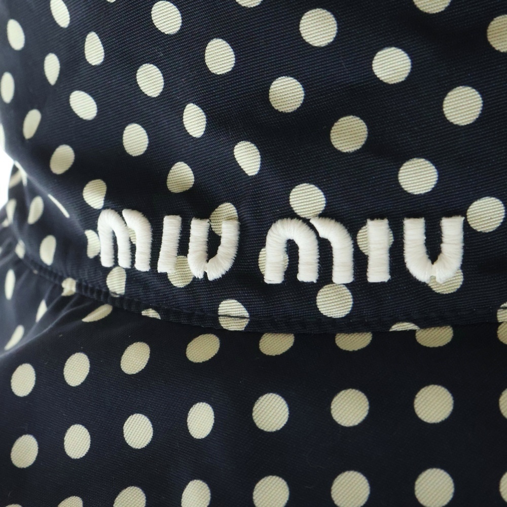 miumiu ミュウミュウ バケットハット ロゴ ドット柄 ネイビー キャンバス 5HC196