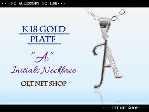 A/イニシャル/ネックレス/新品/K18GP/シルバー/レディース/18金/ホワイトゴールド/アルファベット/英語/頭文字/CZ/ダイヤ/WG