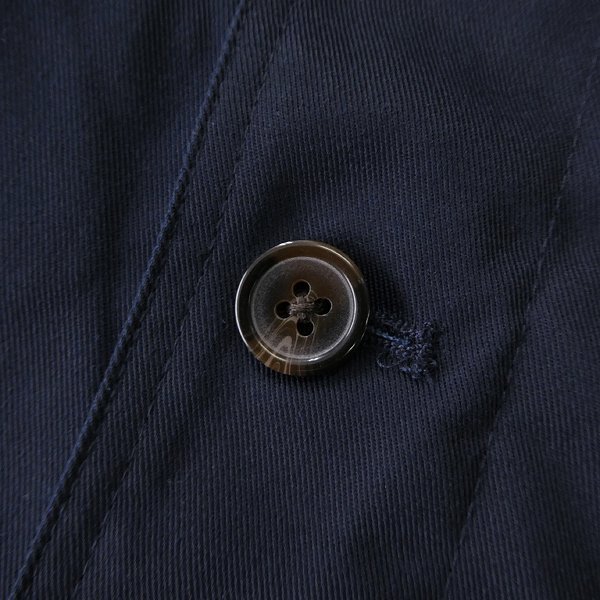 ハリ感のある、丈夫なツイル生地を使用したブルゾンです。 ゆとりのあるサイズ感で、ストレスフリーな着心地で、無駄を省いたシンプルなデザインは、きれいめやモード、ノームコアなど、落ち着いた大人のスタイルにも自然に溶け込みます。 無地Tシャツやスウェット、パーカーとの相性も良く、寒い季節にはコートのインナーとしても活躍。 季節を問わず着回せる、汎用性の高いアイテムです。 【デザイン】 ・裏地なし ・フロントは6つボタン ・袖先は1つボタン(本開き) |