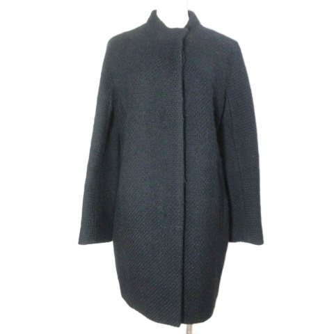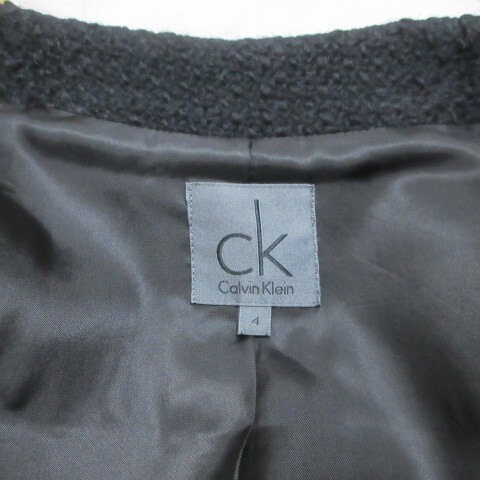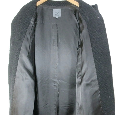 シーケーカルバンクライン ck Calvin Klein コート ウール ハイネック ミドル丈 比翼仕立て 4 M相当 黒 ブラック /X レディース