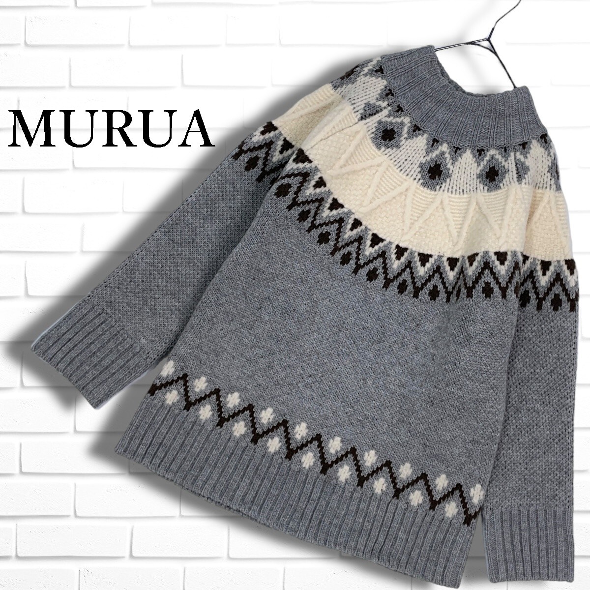 ◆良品◆ MURUA ムルーア ゆったり♪ 長袖 ニット セーター 白 × グレー ホワイト レディース F ◆送料無料◆ 5715I◇
