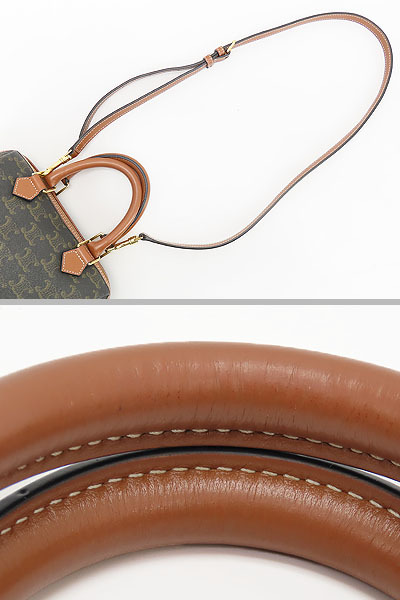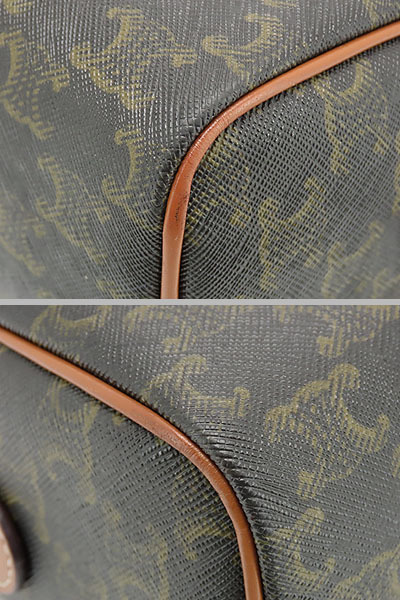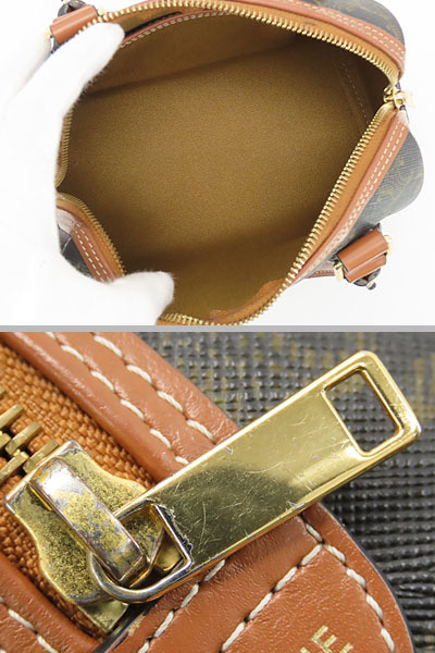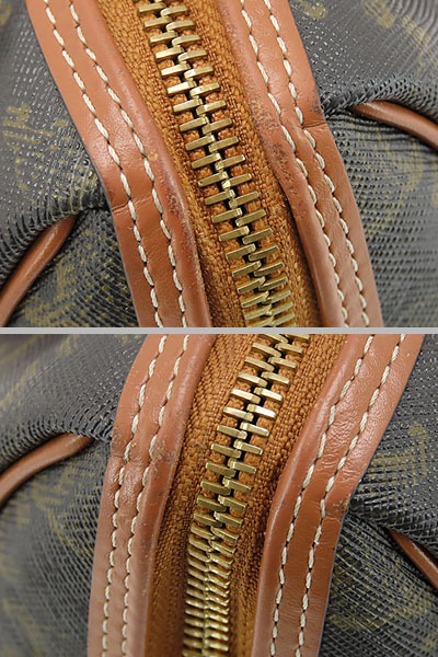 開口部フチ取りレザーやフチのパイピングにスレ、ファスナー布地の一部に汚れ、ハンドルにわずかな薄キズや薄スレ、金具に薄キズやメッキ剥げ、内側にわずかな薄スレや薄汚れ等、使用感ございますが、全体的に綺麗なお品物になります。 ※香水臭あり |