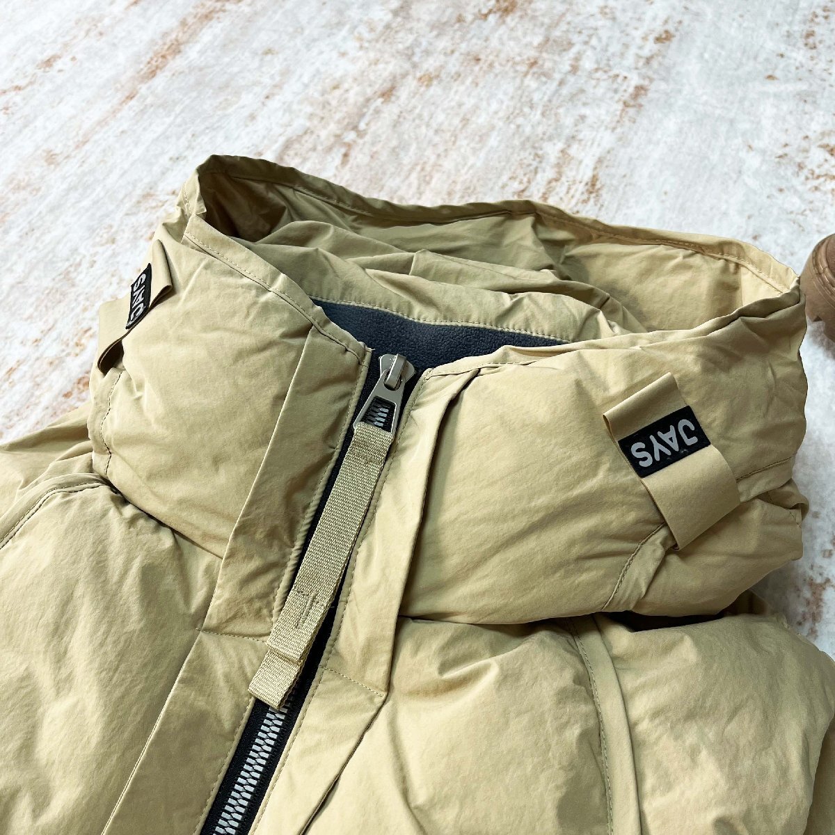 ボディーは自社で厳選された高級なダックダウンを贅沢に採用、たっぷりと空気を含んでおり、体を暖かく包み込みます。表地に素材感の高密度素材を使用して防風効果はもちろん、心地よいタッチ感を感じることができます。裏地は滑りのいい素材を使うことで、背中の引っかかりを軽減させてスムーズな着脱をかなえているのです。