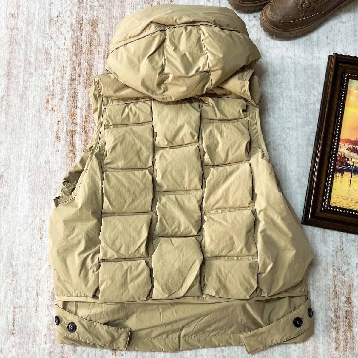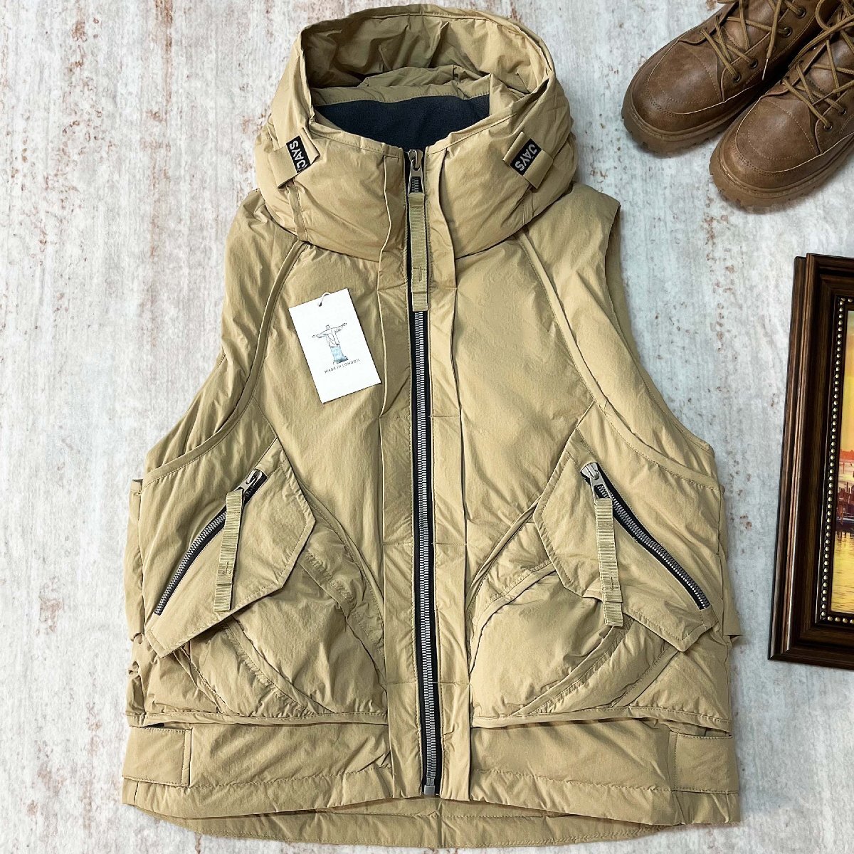 スタンドカラー仕様が、高めに仕上げることで、首元まで冷気の侵入をしっかりカット、保温性を大幅にアップします。両サイドにジッパー付きのポケットがあり、手を温めるのはもちろん、ポケットにスマホやカギなど入れにも便利です。厚手のフード付いて寒い日にはお頭を覆って防風性良いです。ノースリーブなので家事やアウトドアでも袖が邪魔にならず動きやすい。