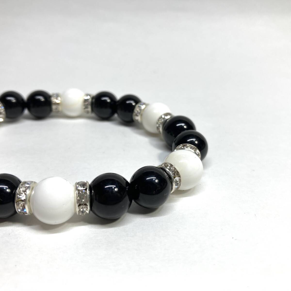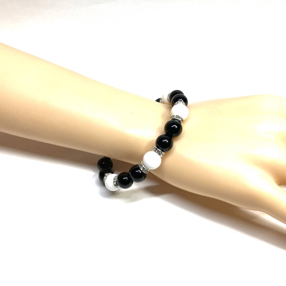 モリオン&ホワイトオニキス パワーストーン ブレスレット 天然石ブレス (シルバー) 10mm メンズ・レディース 厄除け 人間関係 ☆